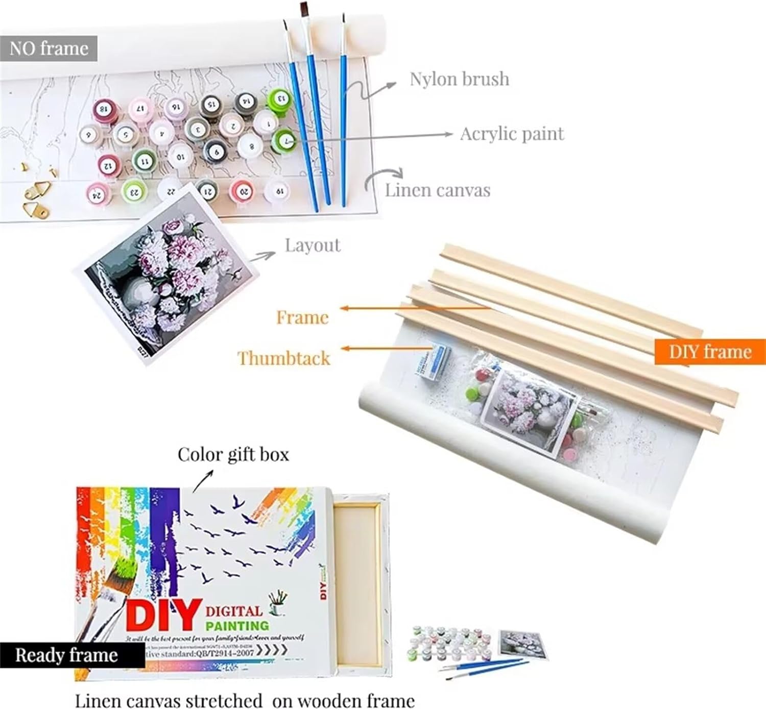 MATERIALI DI QUALITÀ: Colori acrilici ecologici, colori brillanti e pigmenti sufficienti. Potete dare libero sfogo alla vostra creatività sulla tela ad alta definizione, senza preoccuparvi che la vernice possa danneggiare il vostro corpo. PITTURA AD OLIO FAI DA TE: Il kit per la pittura a olio fai da te aiuterà le persone a promuovere il rapporto tra famiglie, amici, marito e moglie, quando si dipinge insieme. La pittura a olio digitale consente di completare facilmente un dipinto a olio e di godere del divertimento della creazione e del gioco. CONFEZIONE INCLUSA: Il kit Paint by numbers include 1 pezzo di tela testurizzata prestampata (senza cornice), 1 set di pigmenti acrilici, più chiodi, due ganci, 3 pezzi di pennelli professionali. PITTURA FACILE: Basta abbinare i numeri della vernice e le figure sulla tela per riempire la vernice. Dipingere in base ai numeri di colore, finire uno per uno. La pittura per numeri è adatta a tutti i livelli di abilità, sia che siate adulti, bambini o principianti. Riempi il colore in base ai numeri, non hai bisogno di alcuna abilità pittorica. REGALO PERFETTO: Perfetto per decorare il soggiorno, la camera da letto, l'ufficio, il ristorante, il bar o qualsiasi altro luogo in cui si desideri abbinare diversi stili di decorazione.