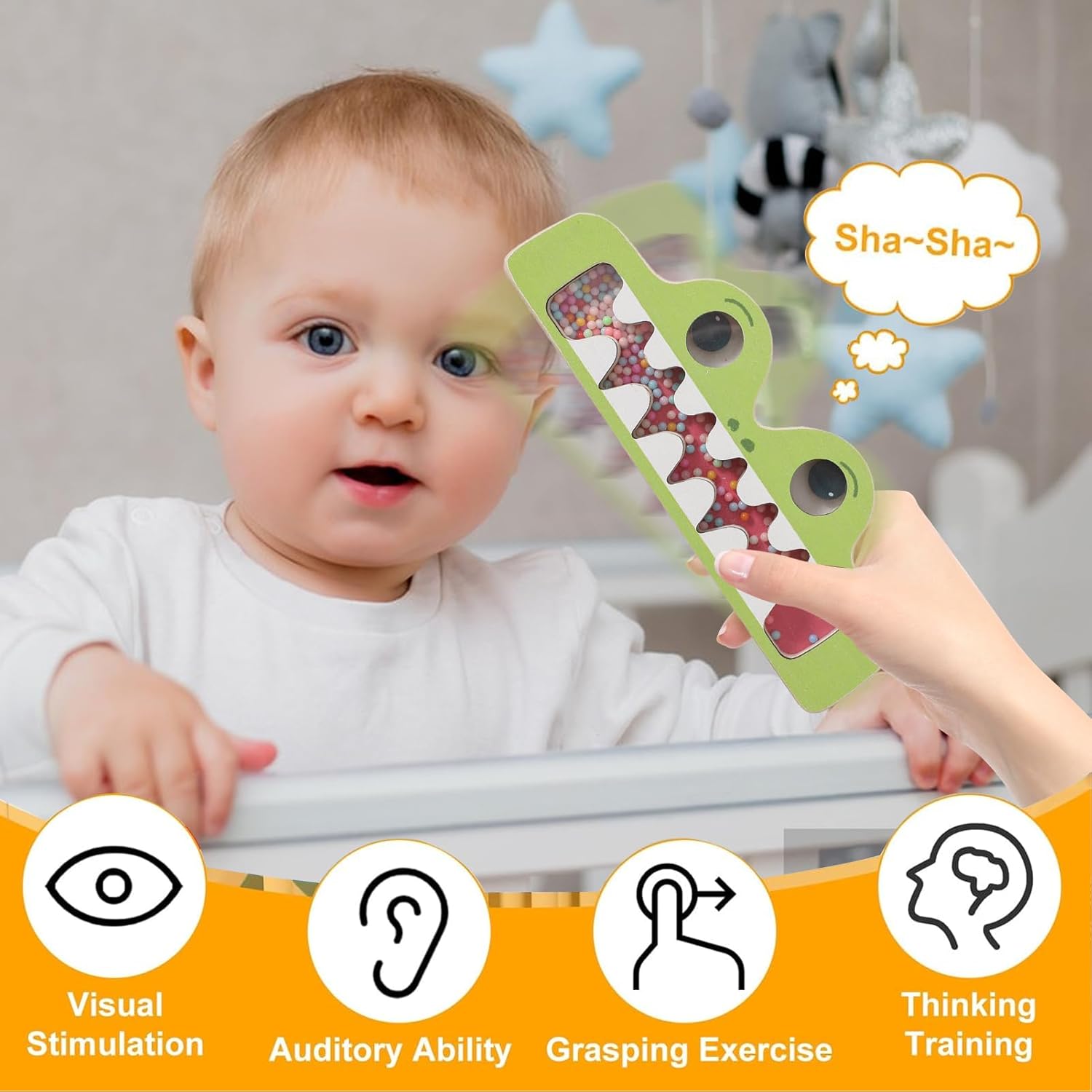 Esperienza uditiva calmante: Rain Maker Progettato per produrre un effetto rilassante della pioggia, il bastone della pioggia per bambini stimola i sensi uditivi, promuovendo lo sviluppo 'udito e incoraggiando esperienze di gioco tra genitori e figli piene di divertimento Compagno animale: Rain Maker Con adorabili disegni di e , questo giocattolo per bambini con bastone della pioggia rafforza le capacità di riconoscimento visivo e offre intrattenimento coinvolgente per i giovani studenti durante i momenti tranquilli o le attività di gruppo Promuove l'apprendimento attraverso il gioco: Rain Maker Caratterizzato da un manico progettato con cura, questo giocattolo sensoriale Rain Maker assicura una presa comoda per i bambini, aiutandoli negli esercizi motori mentre si agitano ed esplorano, creando momenti gioiosi durante il gioco al chiuso o negli scenari di viaggio Stimolazione multisensoriale: Rain Maker Il Rain Maker attiva vista, suono e per migliorare la coordinazione tattile e aumentare la concentrazione visiva, rendendolo strumento ideale per lo sviluppo sensoriale durante il gioco o gli allenamenti, favorendo un'esperienza rilassante ma coinvolgente per gli utenti di tutte le età per il gioco pacifico e il riposo: Rain Maker Con la sua capacità di produrre toni rilassanti a strati, il bastone della pioggia fornisce un effetto sonoro morbido che migliora il rilassamento durante il gioco o l'uso del sonno, garantendo l'assenza di rumore per una serenità ininterrotta