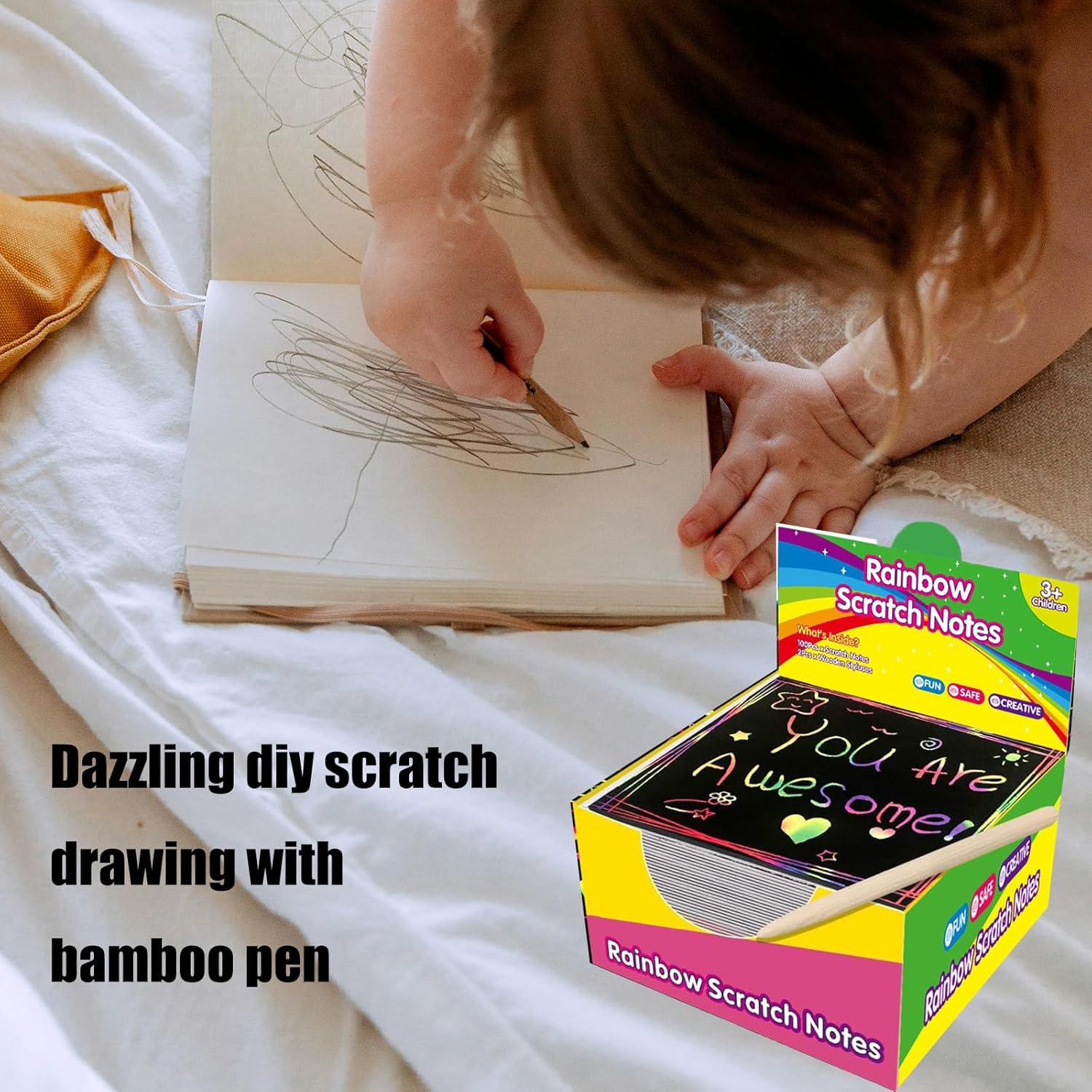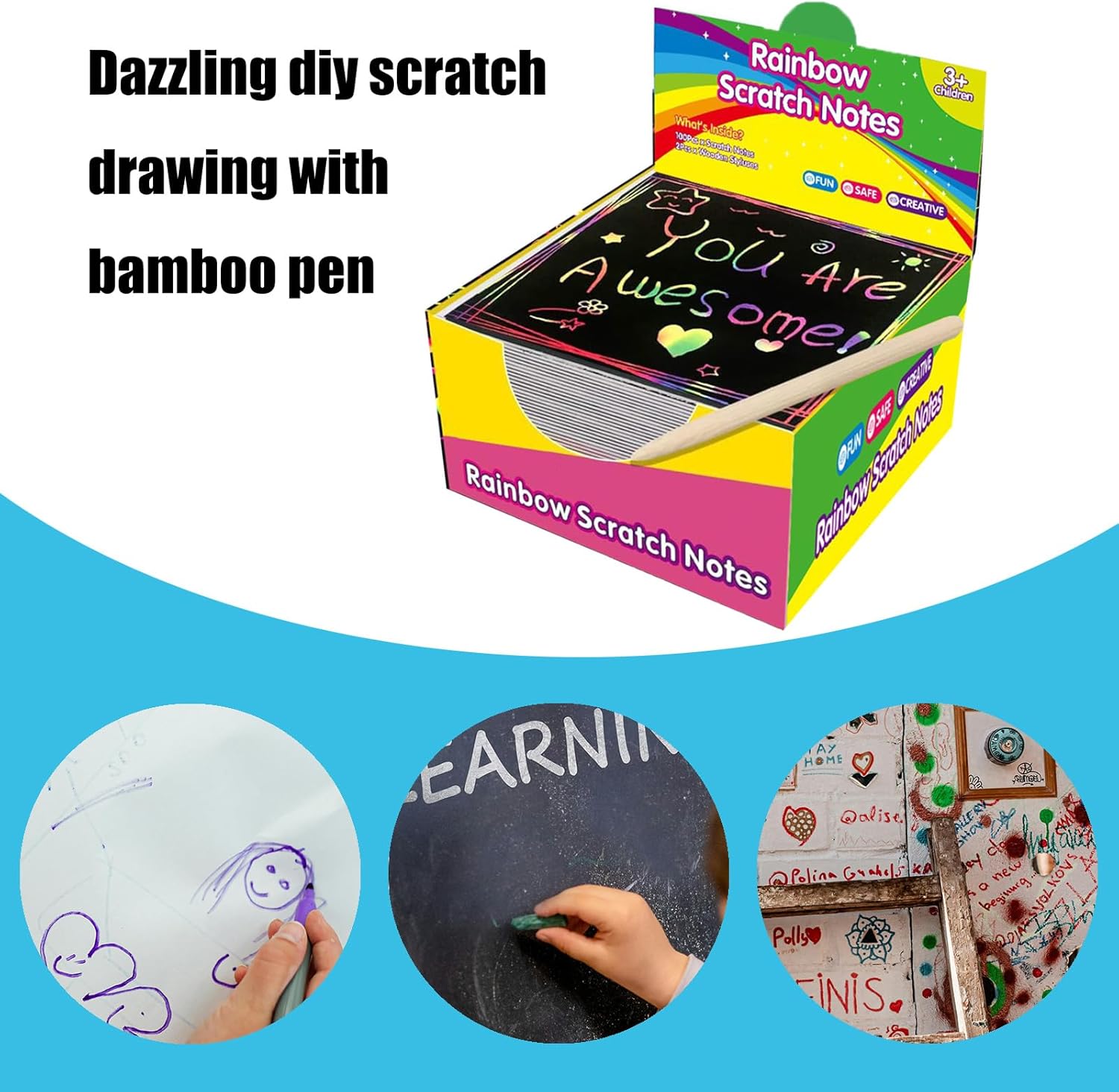 Esplora l'arte e trasforma semplici schizzi in arte che attirano l'immaginazione di ogni artista in erba Adatto per bambini, adolescenti e adulti che amano il disegno e l'artigianato, questa nota da grattare si rivolge ad artisti di tutti i livelli di abilità Perfetta per progetti scolastici, lezioni d'arte o semplicemente come hobby rilassante, questa carta da grattare offre un modo unico per godersi il disegno Disegnare con il nostro set di Scratch Note, con 100 fogli colorati che promettono possibilità artistiche Ogni scatola include 100 pezzi di carta e penna facili da graffiare, che consentono di rivelare un arcobaleno di colore sotto per opere d'arte personalizzate