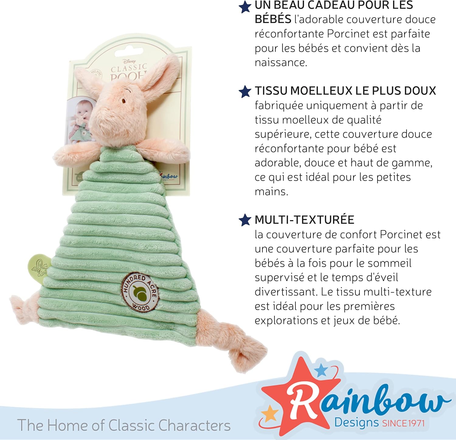 Un bel regalo per i bambini: la coperta confortevole con maialino è perfetta per i bambini e adatta fin dalla nascita. Il morbido tessuto felpato di questo piumino Disney lo rende un meraviglioso regalo neutro per i più piccoli. Tessuto felpato più morbido: realizzata solo in tessuto felpato di alta qualità, questa coperta confortevole per bambini è una coperta morbida e di alta qualità, ideale per le mani piccole. È super accogliente e confortevole da coccolare. MULTI-TEXTURED: la coperta Piglet Comfort è un piumino perfetto per i bambini sia per il sonno sorvegliato che per il divertimento sveglio. Il tessuto multi-texture è ideale per le prime esplorazioni e giochi del bambino. BASATO SU UN CLASSICO AMATO: Piglet è l'amato maialino del classico Tales from the Hundred Acre Wood. La migliore amica di Winnie the Pooh diventerà presto anche la migliore amica del tuo piccolo. Lavabile a mano: il piumino Winnie the Pooh è facilmente lavabile a mano con un sapone delicato, rendendolo un ottimo giocattolo sicuro anche per le dita più sporche. Il tessuto felpato è anche ad asciugatura rapida, rendendo questo giocattolo estremamente conveniente.