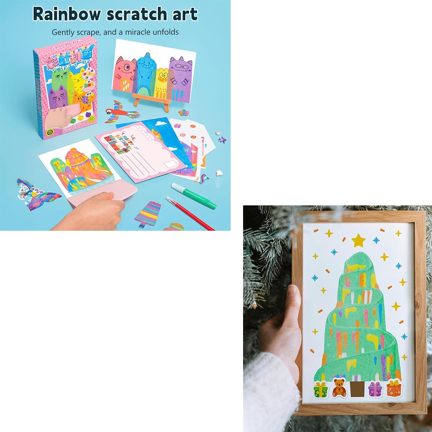 1.[Rainbow Scratch Crafts] Le possibilità sono infinite, lasciate che la loro creatività si scateni, il kit di sottaceti ad aspirazione fornirà ore di divertimento, non c'è un modo sbagliato di sottaceti ad aspirazione. Un dipinto del loro graffio arcobaleno e una cartolina con un messaggio sul retro sono considerati il miglior regalo di sempre! 2.[Crea effetti] Siate orgogliosi della vostra opera d'arte e guardate la creatività del vostro bambino prendere vita con effetti sorprendenti. Disegnare a goccia, far scorrere e creare, creare capolavori, aggiungere adesivi - Scratch Art Rainbow Mini Notes li aiuterà a creare opere d'arte di cui saranno orgogliosi! 3. [Kit completo] Christmas Rainbow Scratch Art viene fornito con tutto il necessario per iniziare, compresi 20 fogli di carta da disegno, 1 adesivo, 7 colori, 6 matite acquerellabili e 1 spatola! 4. [Disegni di cartoline fai da te] Il retro di questi gratta e vinci arcobaleno fai da te è anche una cartolina! Il retro di ogni pezzo è come una piccola finestra d'arte, che non aspetta altro che essere riempita di parole per trasmettere emozioni e storie uniche. 5. [Nuova vita] Con gli adesivi e i dipinti, i Rainbow Dots Scratch Paintings sembrano avere una nuova vita, ogni dettaglio è più vivido, ogni colore è più vibrante. Sicuramente il regalo perfetto per celebrare le festività natalizie.