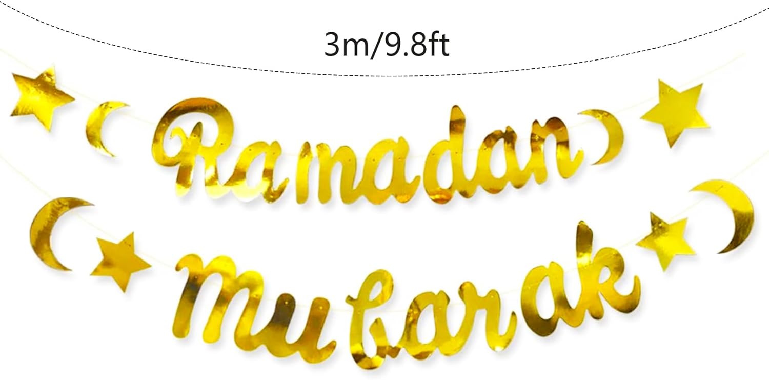 Banner Ramadan Mubarak: decorazioni per striscioni Ramadan con disegni Eid come luna, stelle, ecc. Perfetto per le celebrazioni del Ramadan e può creare un'atmosfera festosa. Materiale durevole: la ghirlanda decorativa Ramadan è realizzata in resistente cartone glitterato, di lunga durata e perfetta per la tua decorazione Ramadan. Facile da usare: gli striscioni del Ramadan devono essere assemblati con la corda fornita, quindi possono essere appesi e decorati ovunque. Ampia applicazione: gli striscioni del Ramadan possono essere appesi a pareti, porte, finestre o soffitti. Gli striscioni decorativi del Ramadan sono ideali come oggetti fotografici e sono perfetti per le feste del Ramadan. Se hai domande sul prodotto per qualsiasi motivo, contattaci e ti daremo una risposta soddisfacente entro 24 ore.
