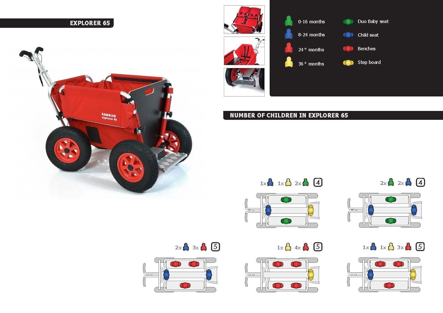 ALTA QUALITÀ E DUREVOLE: il carretto Rambler Explorer 65, essendo il membro più piccolo della serie Explorer, garantisce prestazioni robuste e durature con materiali di alta qualità e trasporta in sicurezza fino a 4-5 bambini attraverso tutte le avventure e le varie condizioni. SICURO E ADATTO AI BAMBINI: questo carrello garantisce un trasporto sicuro e confortevole con comode panche e un design a misura di bambino adatto a bambini di età pari o superiore a 1,5 anni. Sono disponibili accessori per garantire il trasporto sicuro dei bambini da 0 a 2 anni. ACCESSIBILITÀ: lo spazio generoso e la piattaforma bassa facilitano l'entrata e l'uscita e consentono ai bambini di entrare e uscire in sicurezza da soli. Il design degli interni ben studiato garantisce comfort e facilità di movimento durante la guida. STOCCAGGIO E CONVENIENZA: quando è necessario più spazio per i bagagli, il Rambler Explorer 65 offre ampio spazio per riporre giocattoli, snack ed elementi essenziali. Ciò significa che sia i bambini che le loro necessità vengono trasportati e protetti con la massima comodità durante il viaggio. UTILIZZO VERSATILE: destinato principalmente al trasporto di bambini, il carrello funge anche da versatile supporto per l'attrezzatura necessaria durante le gite in spiaggia, il campeggio o gli eventi all'aperto, unendo praticità e stile in qualsiasi avventura.