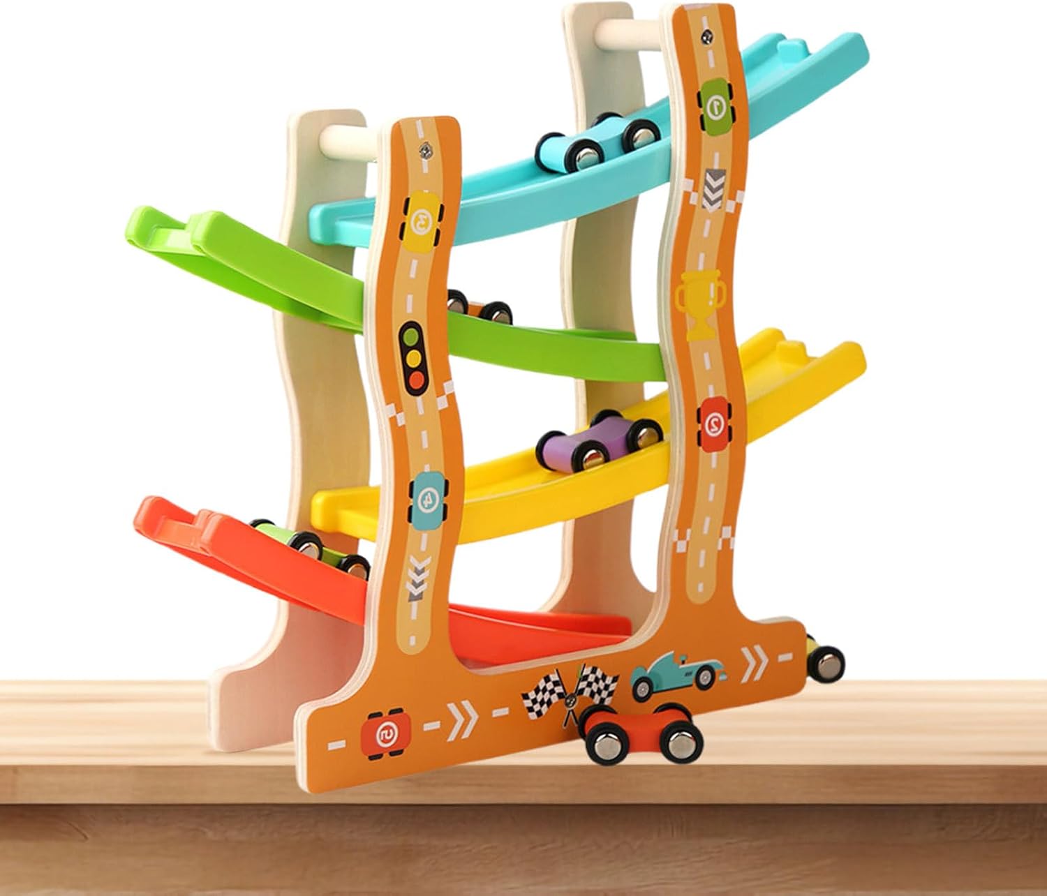 Arte squisita: i bambini possono giocare senza preoccupazioni grazie alla lucidatura fine 'esterno della rampa per auto, senza sbavature o bordi appuntiti. La sua base in legno robusta e più spessa offre maggiore stabilità e sicurezza per ore di comodo divertimento Robusto e adatto ai bambini: il in legno della nostra rampa per auto è progettato per stabilità e durata. Il bambino potrà godersi un'esperienza sicura sulle montagne russe senza paura di crollare, consentendo un gioco senza problemi e più divertimento Stimola l'immaginazione: il giocattolo della rampa per auto presenta un design straordinario e dinamico, catturando l'immaginazione dei bambini piccoli con la sua vasta gamma di colori vivaci. Incoraggia il riconoscimento cognitivo e il discernimento dei colori, aiutando i bambini ad apprendere attraverso il gioco Corsa dinamica: migliora il brivido con il design a frana inclinata del nostro giocattolo per rampa per auto, spingendo la piccola auto lungo una pista a 4 strati e multi-angolo con un movimento fluido e scorrevole. Prova l'emozione della velocità e stimola la curiosità e le capacità di esplorazione di figlio Migliora la relazione genitore-figlio: il nostro giocattolo con rampa per auto promuove l' familiare offrendo divertimento interattivo e giochi con gli amici di cui possono divertirsi sia i genitori che i bambini. Con il suo design che migliora il rapporto genitore-figlio