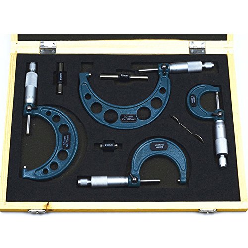 Gamma: 0-25mm; 25-50mm; 50-75mm; 75-100mm Precisione: 0,01 mm Quantità: 4 pezzi / set Impugnatura a cricchetto per un'applicazione precisa della forza. Dado di bloccaggio.