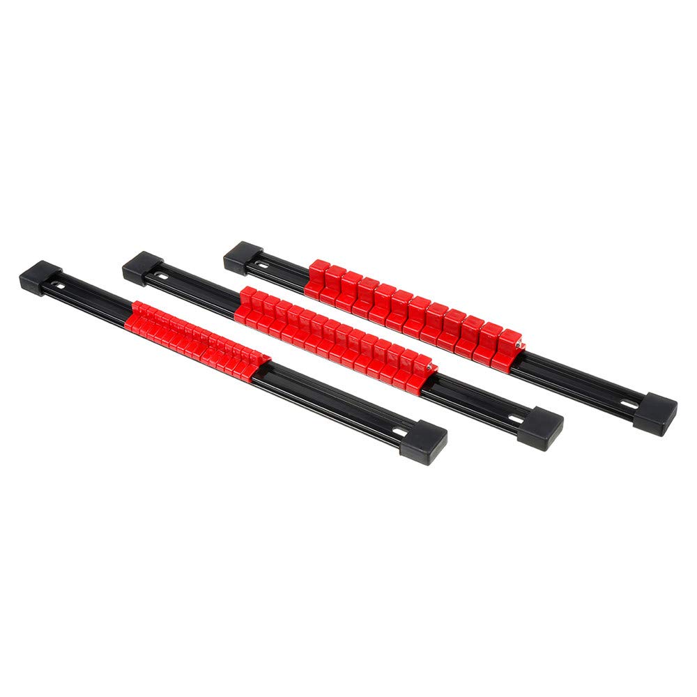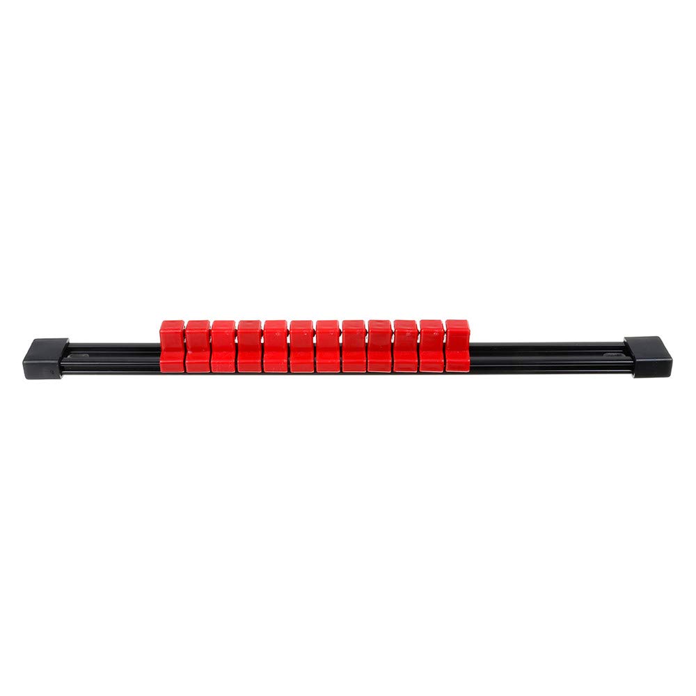 6pcs 1/4 3/8 1/2 pollici Organizer Socket Supporto per strumenti di montaggio su guide scorrevoli Lunghezza totale: 35 cm Il set include: 1pc rosso 1/4 'unità con presa 16 clip 1pc Blu 1/4 'Drive con 16 morsetti femmina