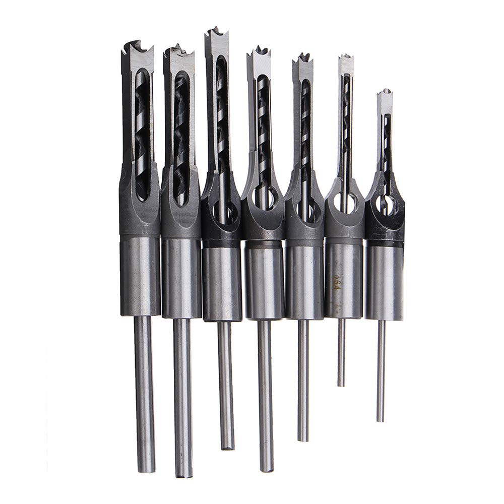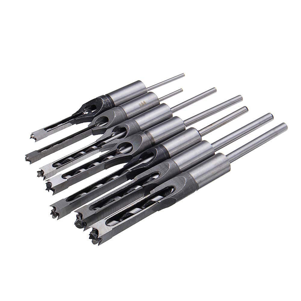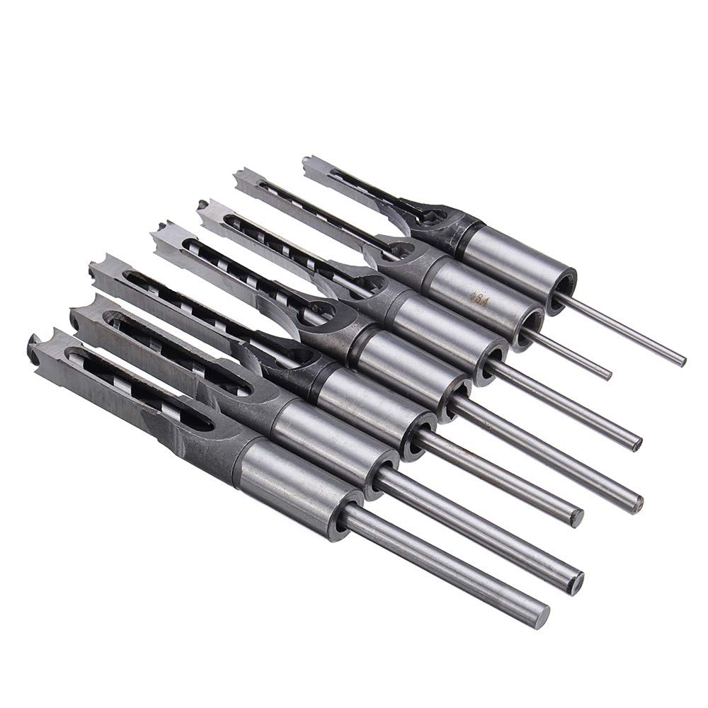 Materiale: acciaio 45 # Colore: Silver Diametro: 6,0 millimetri / 6,4 millimetri / 8,0 millimetri / 9,5 / 10mm / 12,5 millimetri / 12,7 millimetri Utensili per la lavorazione del legno da mortasa in acciaio da trapano a punta da 6 mm-12,7 mm. Questo set di scalpelli per mortasatura è ideale per praticare fori quadrati in legno.