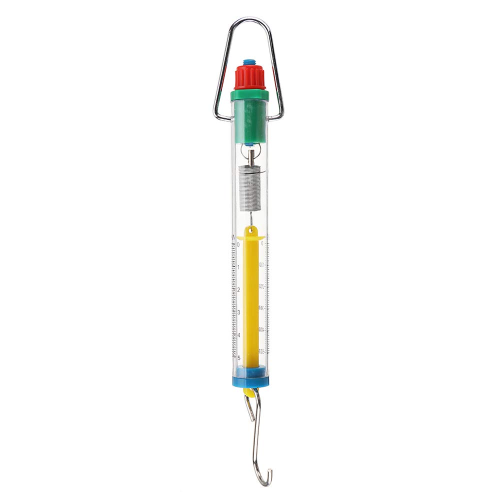 Materiale: metallo Premium + plastica + acciaio inossidabile Gamma dinamometro a barra: 1N 2,5N 5N 10N Peso del gancio: 50 g * 10 Dinamometro a cilindro: 5N Dinamometro dimostrativo: 5N