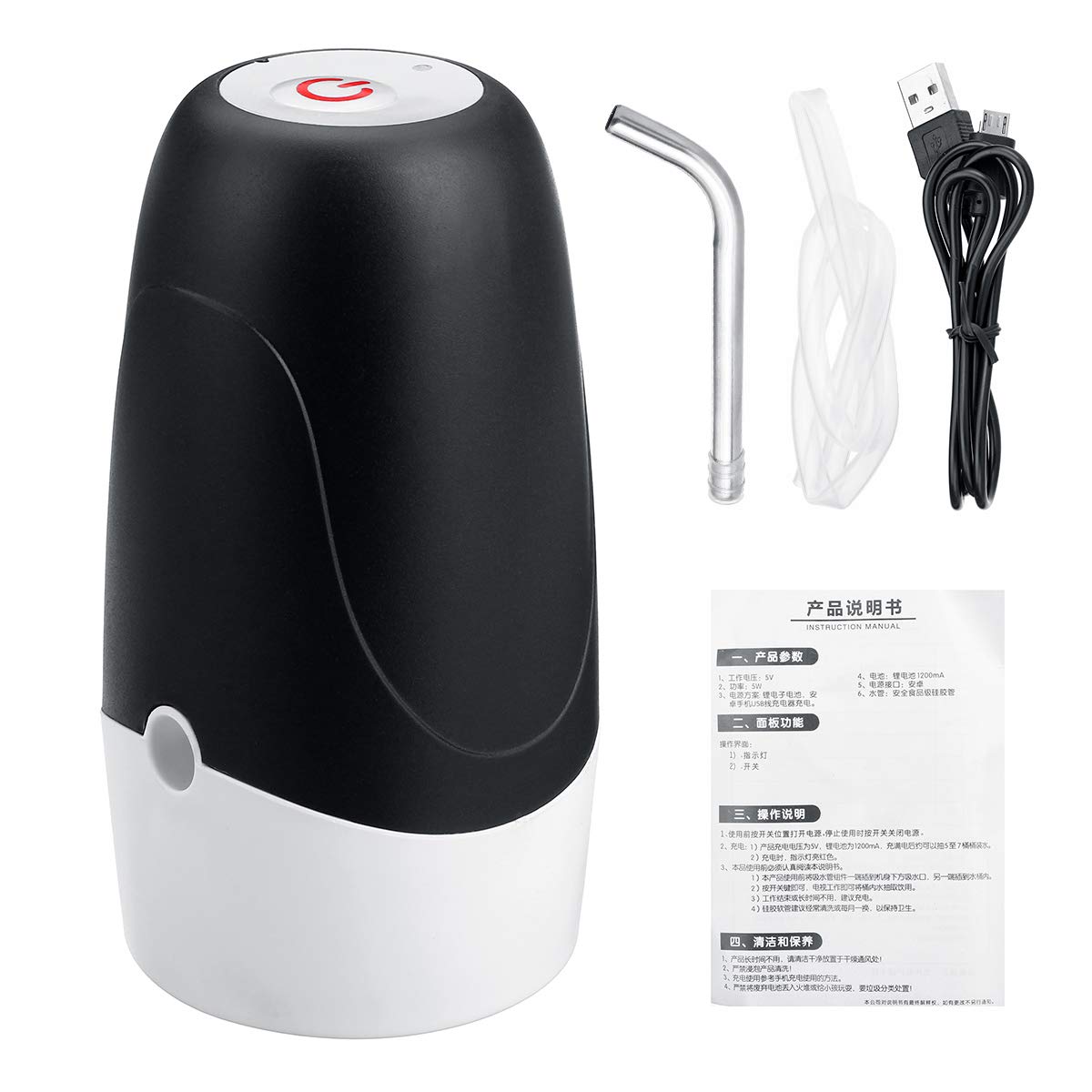 Distributore d'acqua elettrico, ricarica USB, dimensioni compatte rendono, per estrarre, la scelta migliore per l'ufficio, la casa, la cucina, la scuola e così via. È compatibile con la maggior parte delle bottiglie d'acqua da galloni, non è necessario fare leva sul coperchio. Batteria ricaricabile incorporata di grande capacità e dispensare barili di bottiglia d'acqua da una gallone una volta caricati completamente. Funzionamento con un solo pulsante, fare clic due volte in successione, pompaggio quantitativo da 600 ML, basso rumore. Adottare acciaio inossidabile 304, tubo di ingresso in silicone per alimenti, nessun odore. Salute e sicurezza. Le dimensioni compatte lo rendono facile da trasportare.