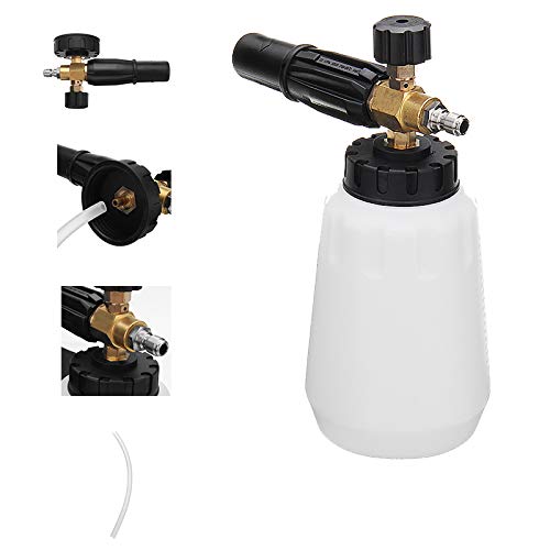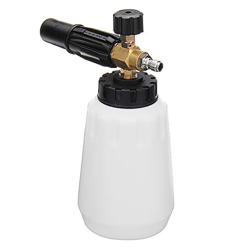 Connettore rapido G1 / 4 per pompa a mano per lavatrice a lancia per schiuma ad alta pressione Capacità: 1L Interfaccia: 1/4 'F Funzione: Foam Maker Colore: bottiglia bianca e ugello nero