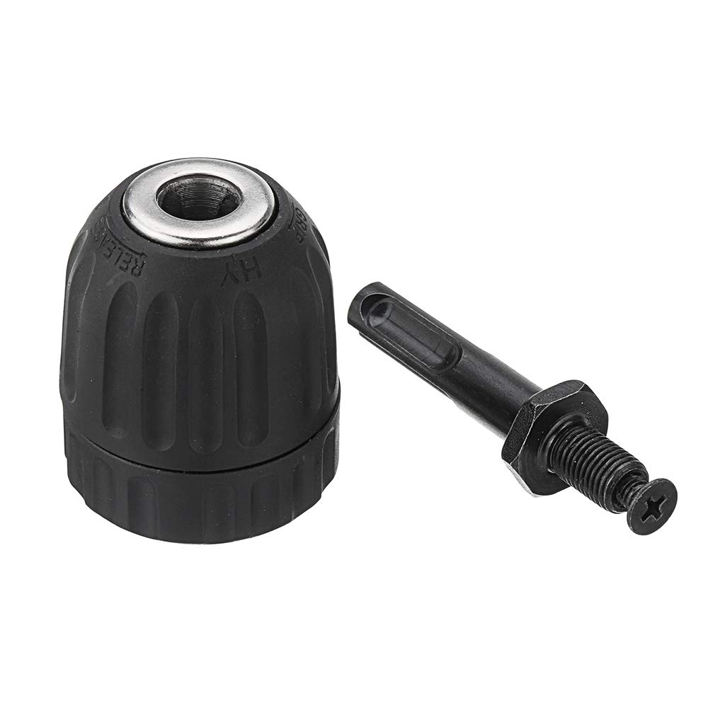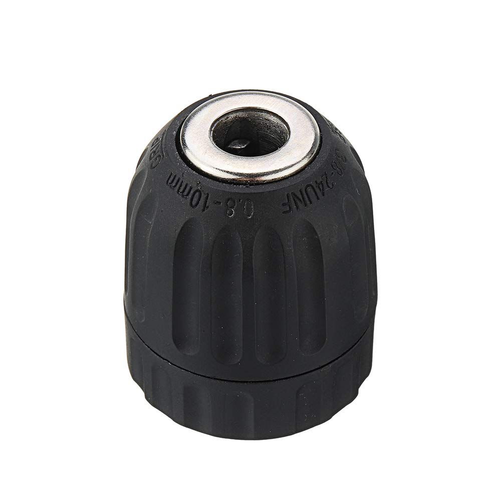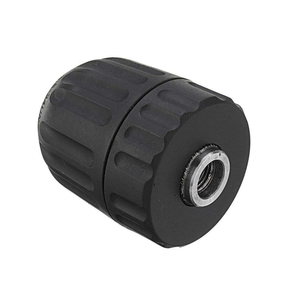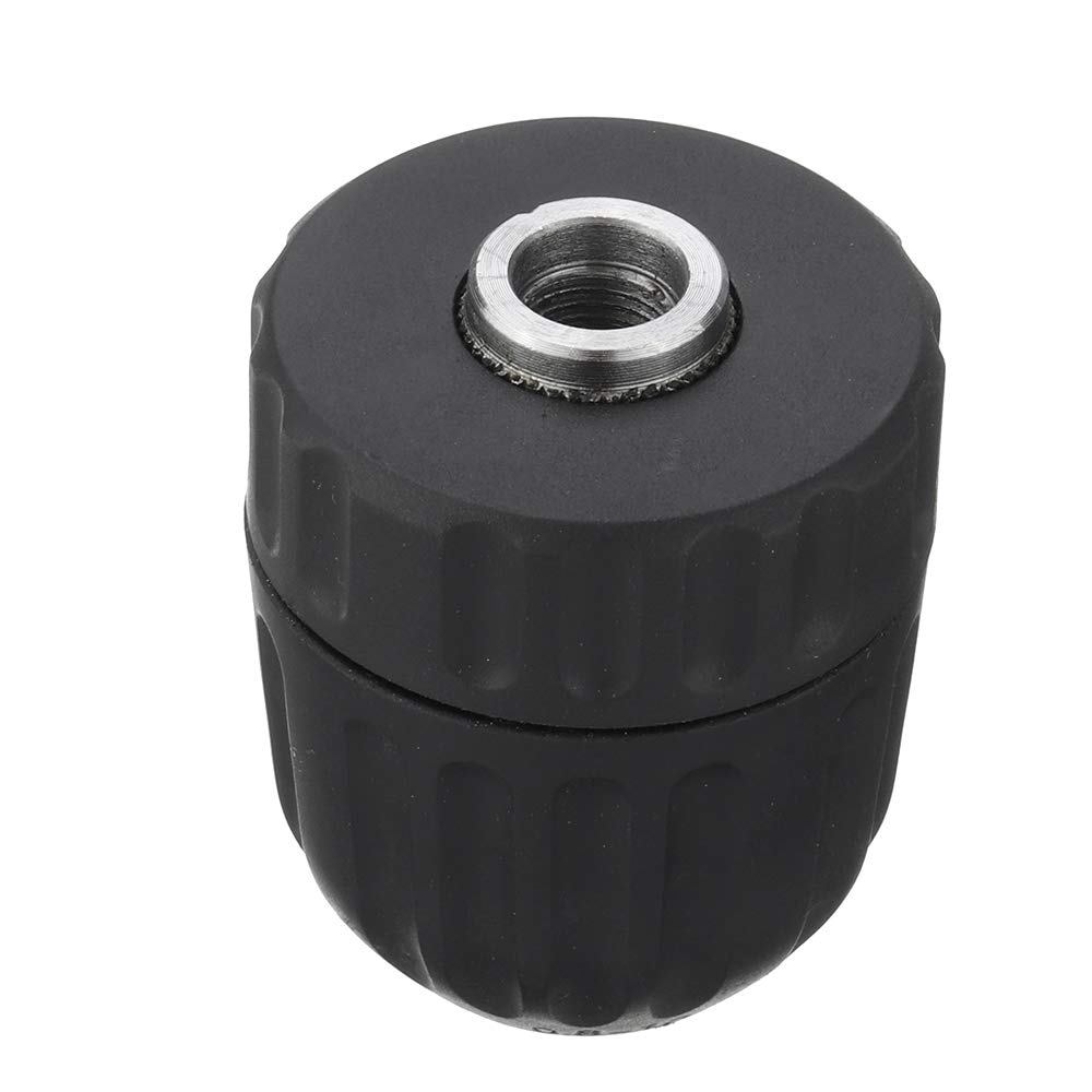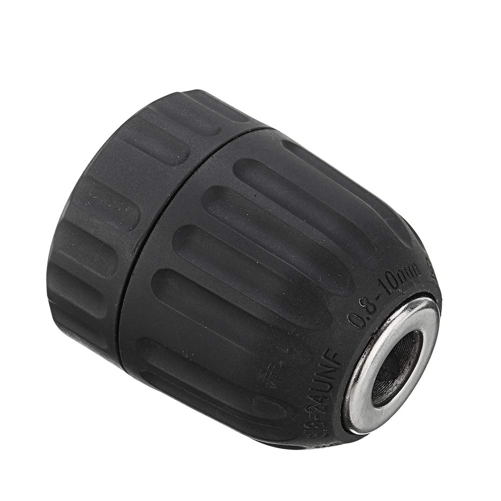 Adattatore per mandrino per trapano da 0,8-10 mm con impugnatura rotonda Materiale: plastica, metallo Colore nero Campo di serraggio: 0,8-10 mm Esclusiva funzione di bloccaggio brevettata, che rompe il metodo di bloccaggio tradizionale, dopo aver montato i pezzi di bloccaggio a cricchetto sul coperchio posteriore,