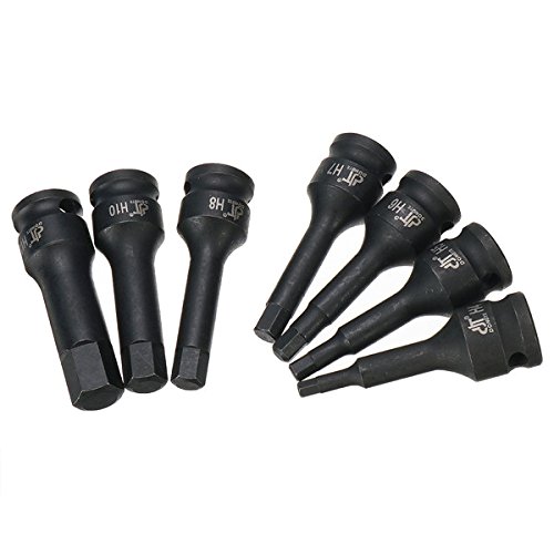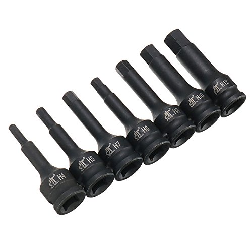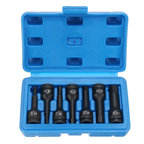 Set di punte per bussole a impatto esagonale metrico da 7 pz 3/8 pollici Dimensioni della cassa: ca. 15x8.5x5cm / 5.9x3.35x1.97 '' Dimensioni: H4, H5, H6, H7, H8, H10, H12 Materiale: acciaio al cromo molibdeno Trattamento di superficie: fosfatazione