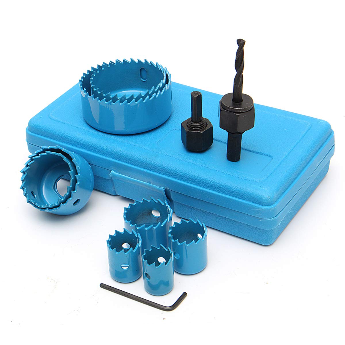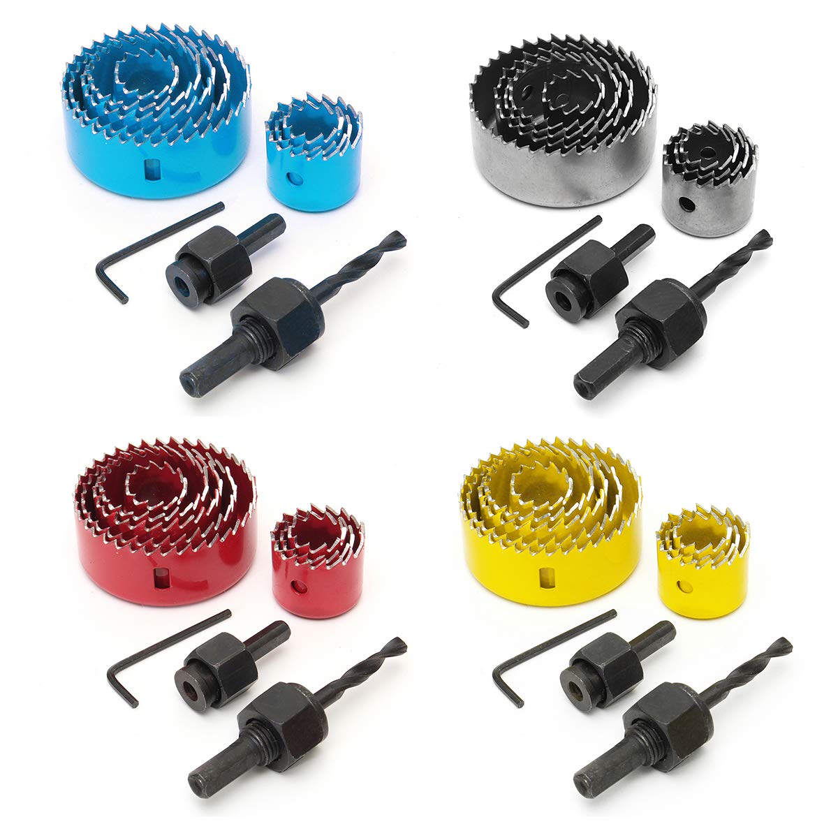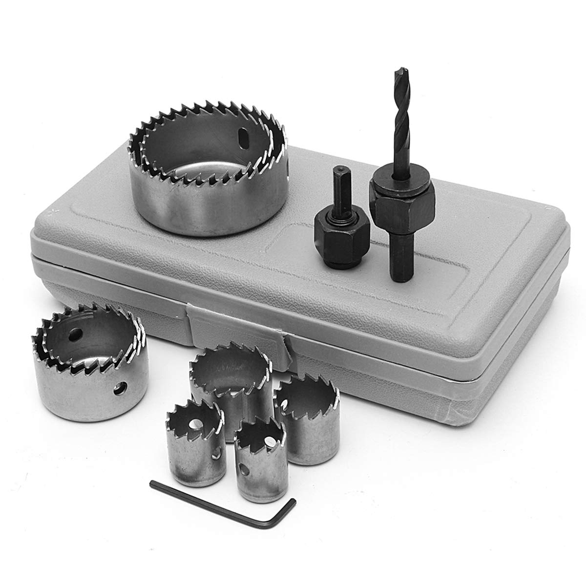 Materiale: HSS Diametro di taglio (circa): 19 mm, 22 mm, 25 mm, 32 mm, 38 mm, 44 mm, 54 mm, 64 mm Profondità (circa): 28 mm Utilizzare per: legno, ferro, lega di alluminio Ideale per tagliare legno, lega, ferro ecc.