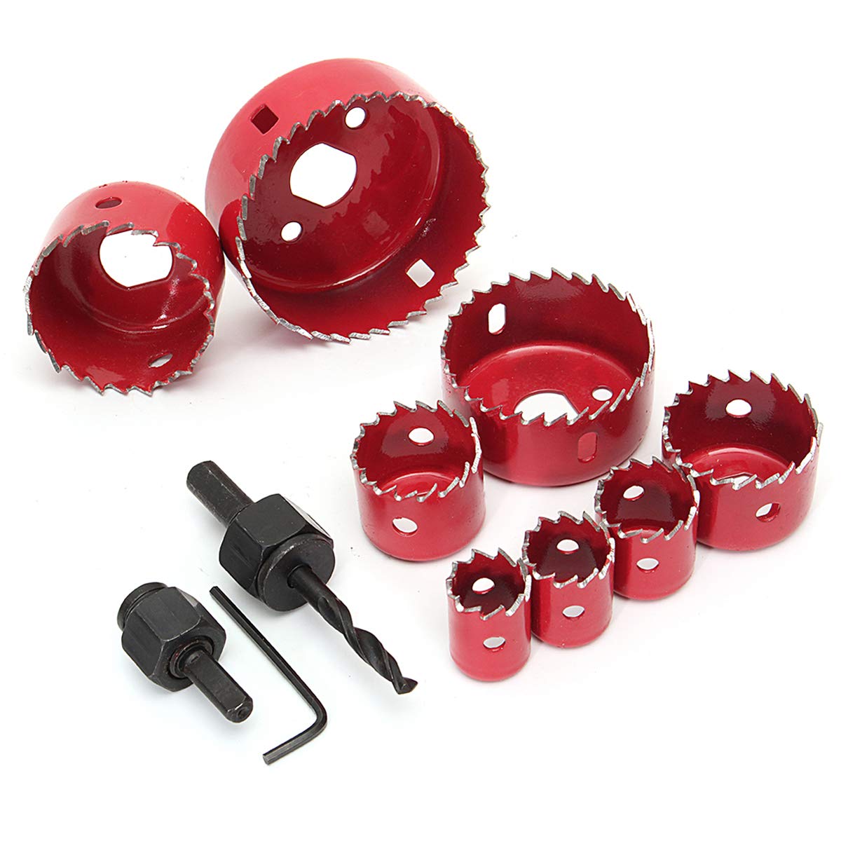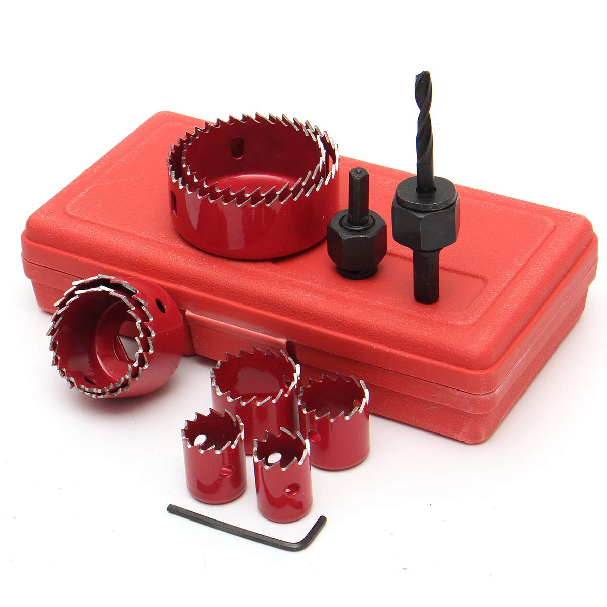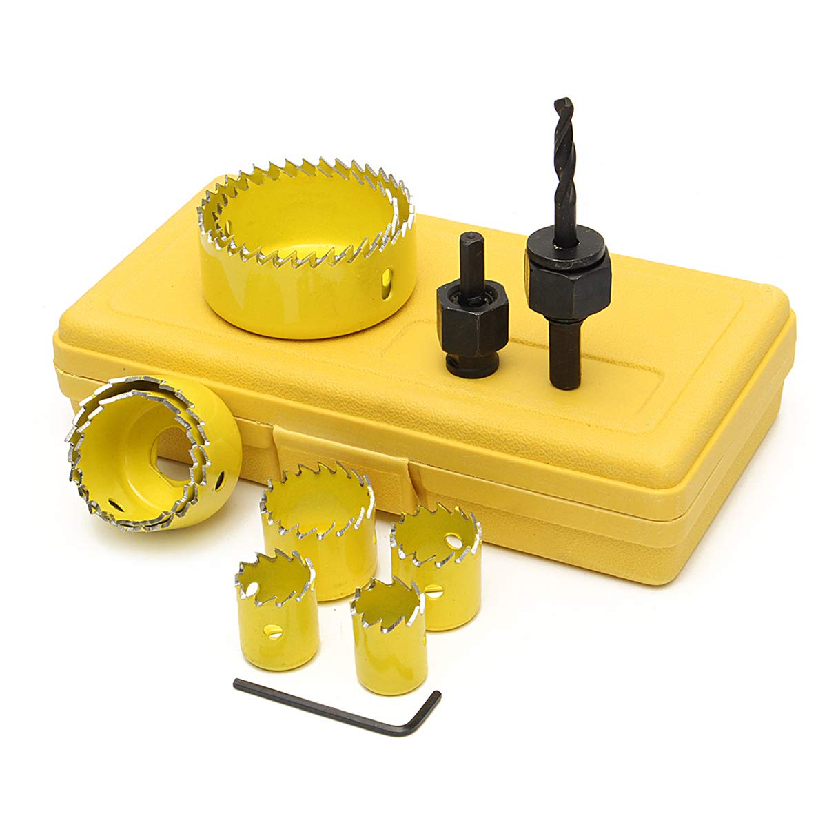 Materiale: HSS Diametro di taglio (circa): 19 mm, 22 mm, 25 mm, 32 mm, 38 mm, 44 mm, 54 mm, 64 mm Profondità (circa): 28 mm Utilizzare per: legno, ferro, lega di alluminio Ideale per tagliare legno, lega, ferro ecc.