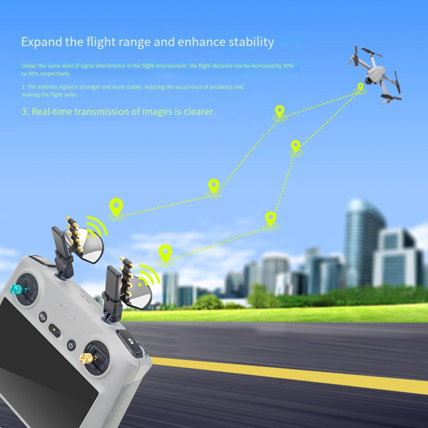 [MIGLIORAMENTO DEL SEGNALE SUPERIORE] Realizzato in ottone per un'eccellente conduttività elettrica, questo amplificatore di segnale dell'antenna migliora la potenza del segnale, fornendo una comunicazione affidabile e riducendo le possibilità di interruzione del segnale durante i voli. [Aumento della distanza di volo] Aumenta la portata di volo dal 30% al 50%, permettendoti di avventurarti ulteriormente migliorando la stabilità del tuo veicolo aereo senza pilota in condizioni di volo simili. Trasmissione chiara in tempo reale: goditi la trasmissione in tempo reale di immagini cristalline grazie al design innovativo, perfetto per catturare filmati aerei mozzafiato senza interruzioni. [Installazione facile da usare] Progettato pensando, questo amplificatore di segnale lo rende adatto sia per i principianti che per i piloti di veicoli aerei senza pilota esperti. Progettato per la compatibilità: su misura per l'uso con controller RC2, RC PRO AIR3S e Mavic3pro, rendendolo un'aggiunta cruciale per migliorare la tua esperienza di controllo remoto.