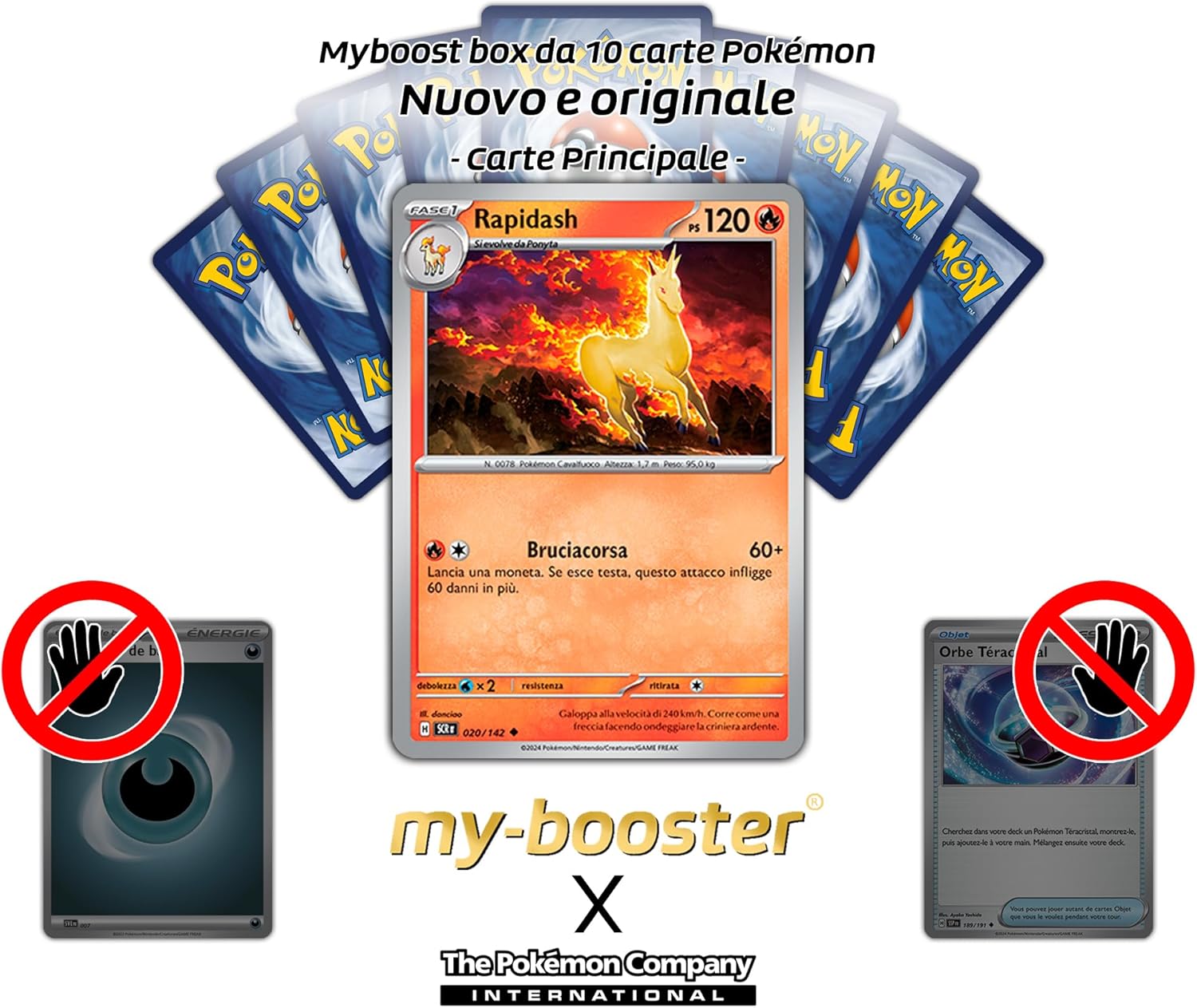Trova i tuoi Pokémon preferiti nel tuo negozio amazon.fr/my-booster Le scatole Ultraboost e Myboost contengono la carta principale nella parte anteriore delle scatole + 9 carte Pokémon aggiuntive Nuove carte originali certificate "The Pokemon Company" Nessuna carta allenatore/energia - Nessuna carta duplicata Alcune carte aggiuntive incluse potrebbero far parte di una serie Pokémon diversa dalla serie della carta principale in questa scatola.