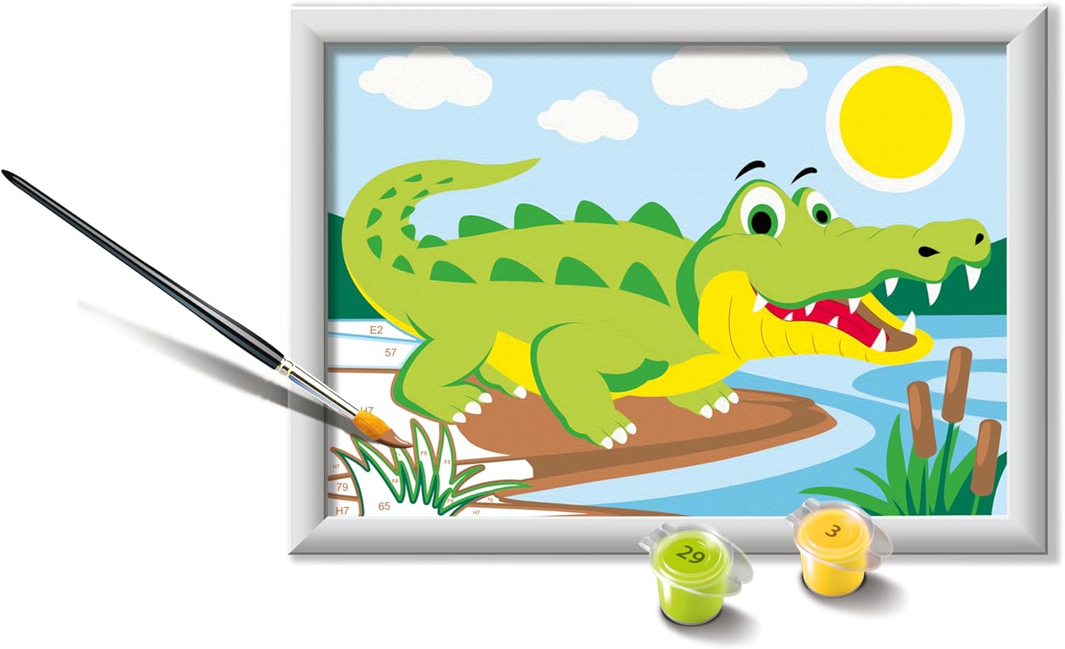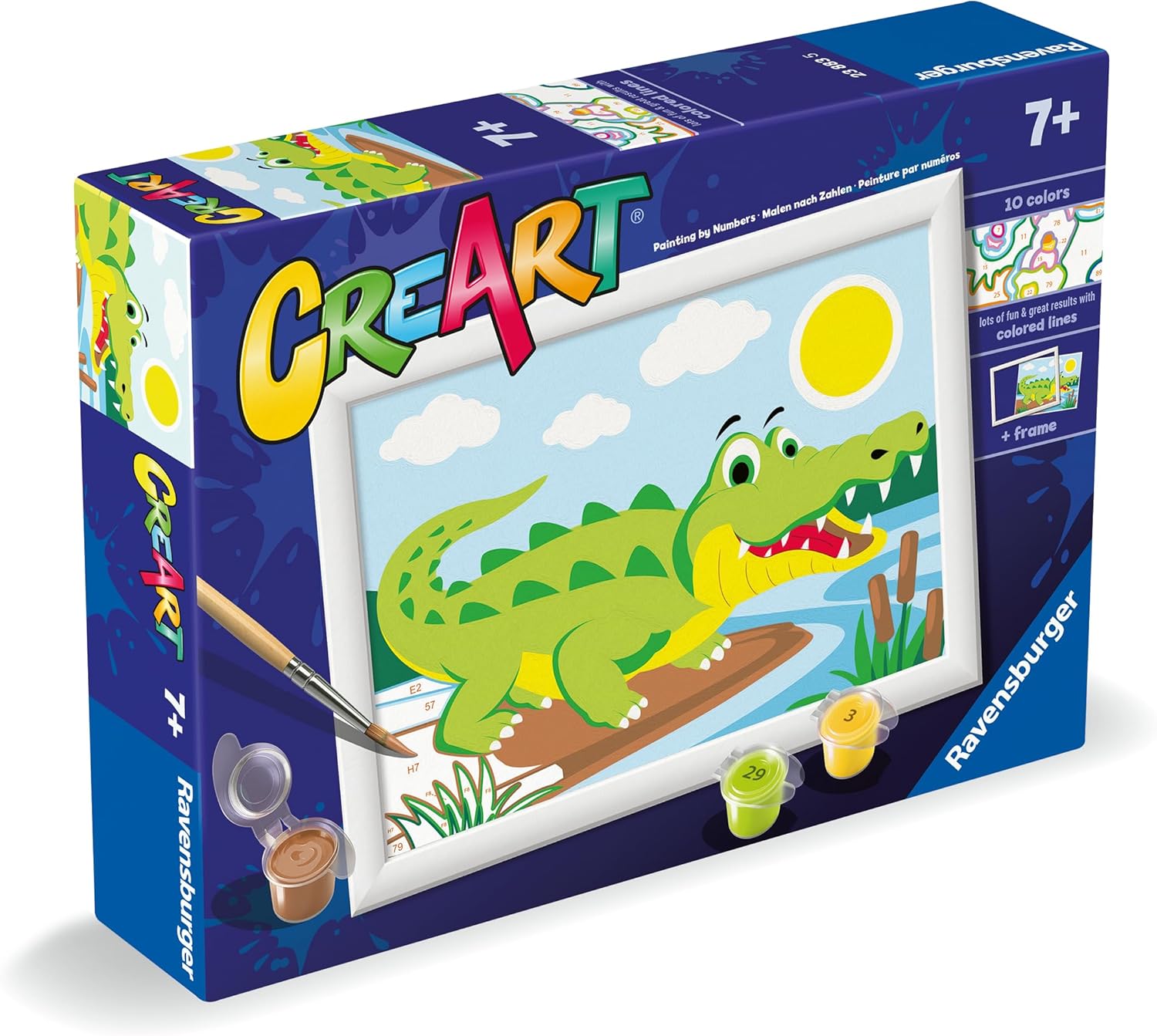 GIOCHI CREATIVI: il regalo per i bambini ideale per chi ama dipingere e vuole creare dei piccoli capolavori su tela grazie all'aiuto di numeri e bordi colorati per riconoscere gli spazi e colorare senza uscire dai margini KIT DI PITTURA PER PICCOLI ARTISTI CON IL COCCODRILLO: il kit comprende la tavola prestampata, i colori acrilici a base d’acqua in vaschette richiudibili e un porta tempere; il pennello e la cornice sono inclusi LIBERA LA FANTASIA: CreArt è il gioco educativo per i bambini dai 7 anni in su che aiuta a esercitare la manualità e la motricità, stimola la fantasia e migliora la concentrazione garantendo soddisfazione e orgoglio a tutti i piccoli artisti PICCOLI CAPOLAVORI DI QUALITÀ: il kit completo di pittura CreArt garantisce sicurezza e qualità, grazie a una tavola da dipingere resistente e a colori a base d'acqua facilmente lavabili, rendendo l'arte accessibile e divertente; dipingere con i numeri non è mai stato così semplice SCOPRI IL MONDO CREART: puoi scegliere tra tantissimi soggetti e diversi livelli di difficoltà a seconda dei gusti e dell’età; il gioco creativo che permette ai bambini di decorare le loro camerette e agli adulti di rilassarsi colorando