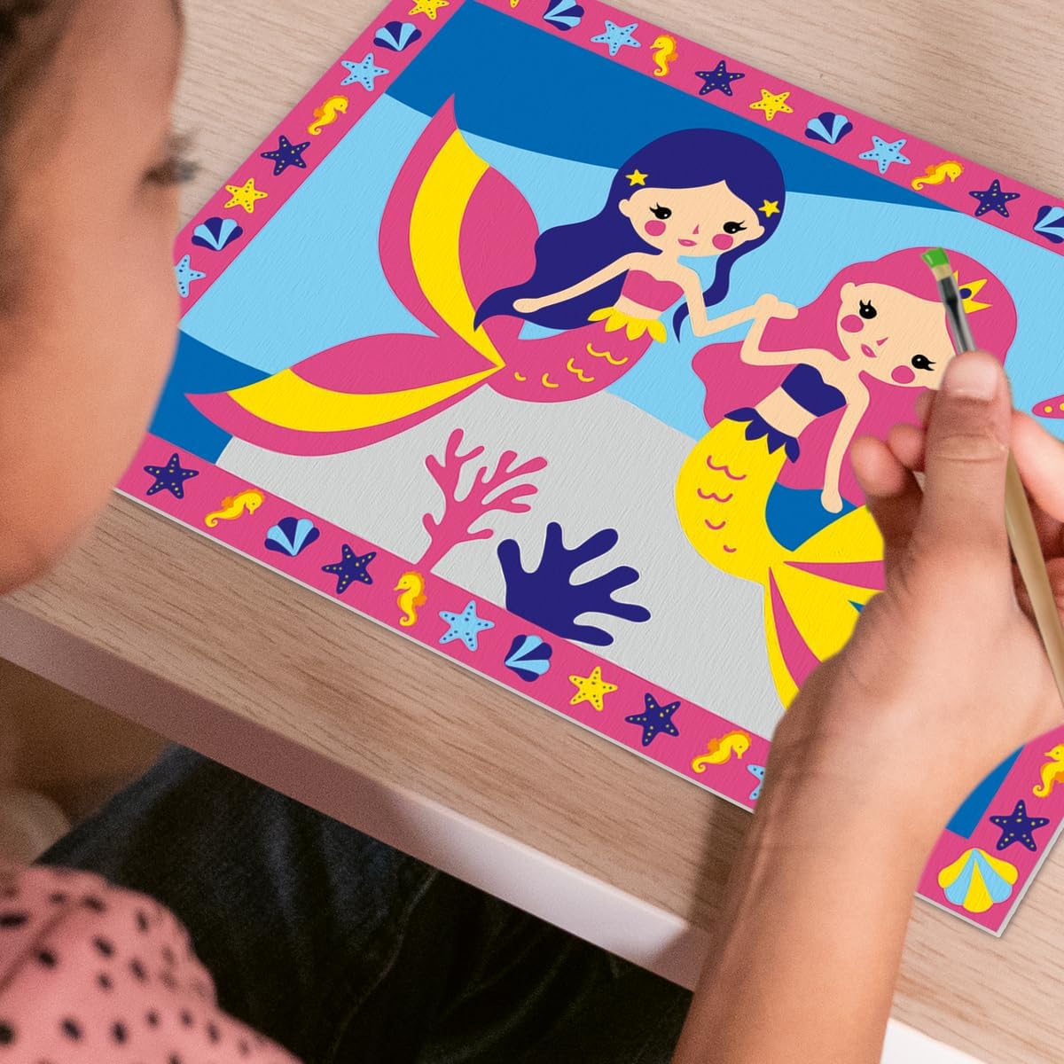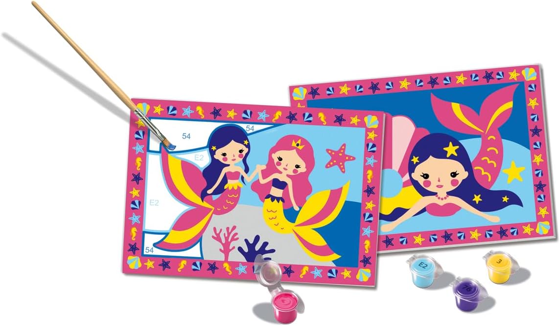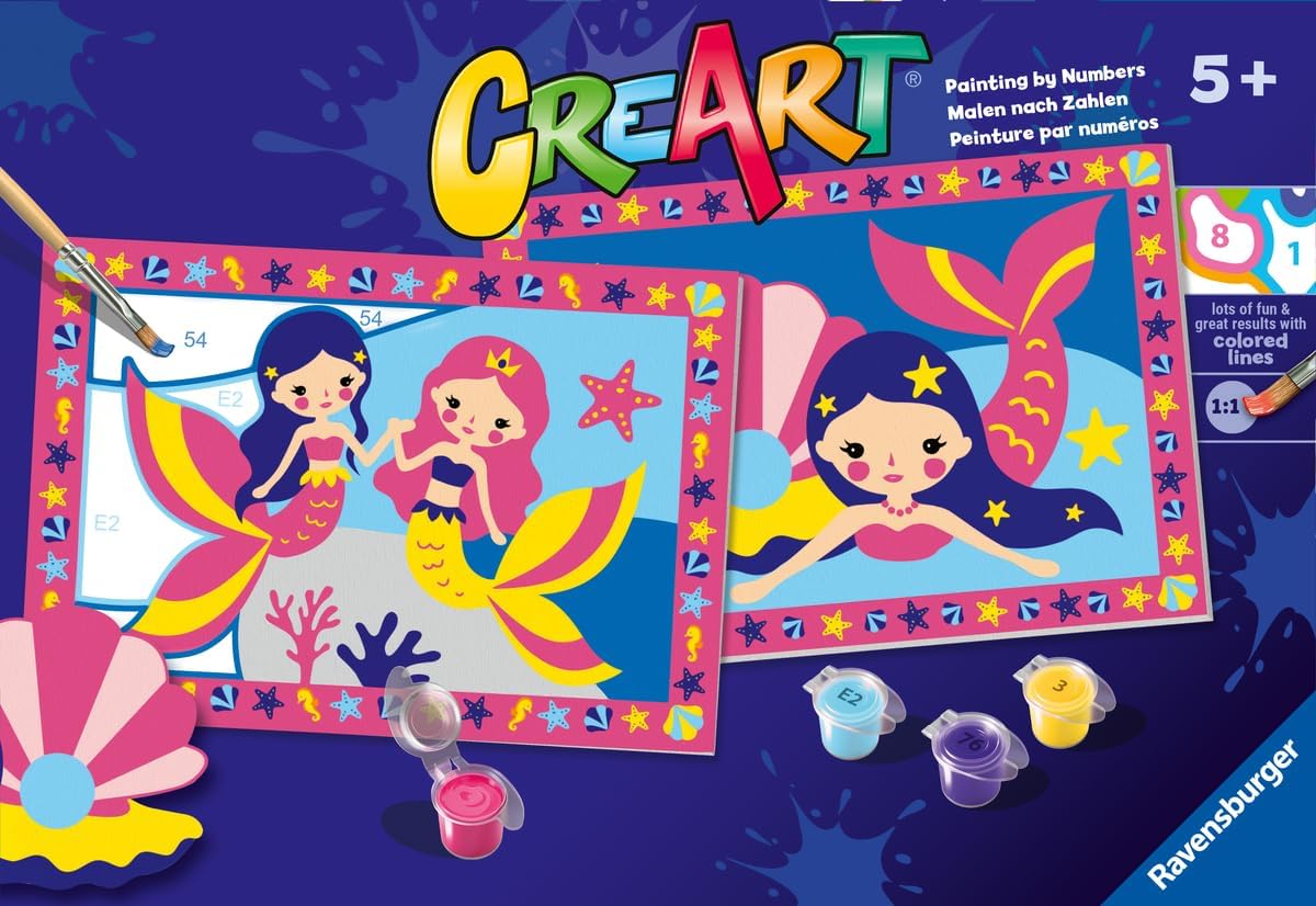 GIOCHI CREATIVI: Il regalo per i bambini ideale per chi ama dipingere con i numeri e vuole creare dei piccoli capolavori su tela grazie all'aiuto di numeri e bordi colorati per riconoscere gli spazi e colorare senza uscire dai margini. GIOCHI CREATIVI BAMBINA 5 ANNI CON MAGICHE SIRENE: il Kit CreArt Junior comprende colori acrilici ad acqua in vaschette richiudibili, 1 tavolozza, 2 tavole prestampate con bordi decorati, 1 pennello a setole larghe e un manuale d’istruzioni con questo dipingere con i numeri bambini. LIBERA LA FANTASIA: CreArt Junior è il paint by numbers pensato per i bambini dai 5 ai 7 anni che aiuta a esercitare la manualità e la motricità, stimola la fantasia e migliora la concentrazione garantendo soddisfazione e orgoglio a tutti i piccoli artisti con questo giochi per bambini. PICCOLI CAPOLAVORI DI QUALITÀ: il kit completo di pittura CreArt garantisce sicurezza e qualità, grazie a una tavola da dipingere con i numeri resistente e a colori a base d'acqua facilmente lavabili, rendendo l'arte accessibile e divertente; dipingere con i numeri non è mai stato così semplice SCOPRI IL MONDO CREART: Puoi scegliere tra tantissimi soggetti e diversi livelli di difficoltà a seconda dei gusti e dell’età; il quadri da dipingere numerati che permette ai giochi bimba 5 anni di decorare le loro camerette e agli adulti di rilassarsi colorando