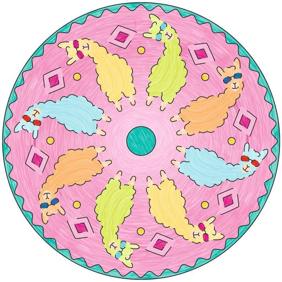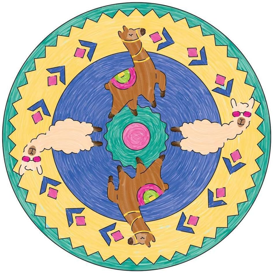 Crea mandala di diversa dimensione per decorare carta da regali, biglietti, quaderni o poster personalizzati Per bambini a partire dai 6 anni Giocare con mandala designer è facile: infila un foglio di carta tra il telaio e la sagoma e crea i disegni seguendo la tua creatività Divertiti a disegnare i tuoi mandala con le immagini dei lama Linea di giochi creativi ravensburger