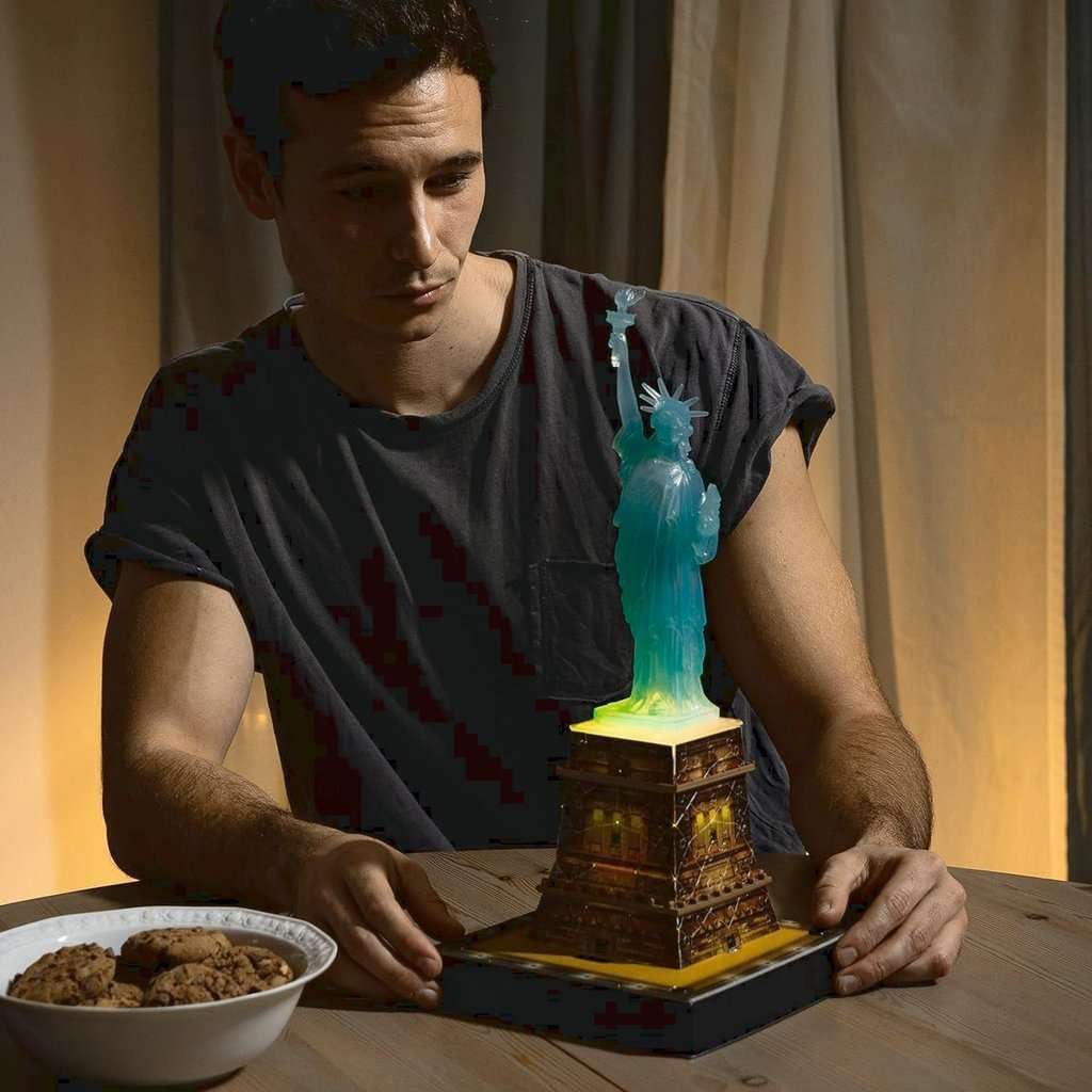 UN MONUMENTO PUZZLE 3D IPER REALISTICO composto da 108 pezzi in plastica numerati e accessori unici per completare la costruzione. Si monta facilmente seguendo l'ordine dei codici per un risultato sensazionale. Contenuto: 1 puzzle 3D da 108 pezzi, i suoi accessori finali, modulo luminoso con LED e istruzioni dettagliate STATUA DELLA LIBERTÀ LUMINOSA Semplice da montare, questa superba riproduzione 3D dell'emblematica Statua della Libertà delizierà grandi e piccini, a partire da 8 anni! Grazie alla sua base luminosa, questo puzzle tridimensionale si illumina con un semplice interruttore e si può trasformare in una vera lampada! Funziona con 3 batterie LR03 non incluse. ALTA QUALITÀ: La tecnologia Easyclick e la qualità del taglio dei pezzi permettono una perfetta integrazione e garantiscono così la solidità del puzzle 3D, il tutto SENZA la minima COLLA! Il montaggio è semplice grazie alle istruzioni illustrate e ai pezzi del puzzle numerati. Lunghezza: 18 cm, Larghezza: 18 cm, Altezza: 40 cm UN REGALO IDEALE per tutti gli appassionati di puzzle! Questo puzzle 3D può essere assemblato da solo o insieme ad altri per condividere un momento di convivialità in famiglia o con gli amici. Un regalo perfetto da collezionare o regalare per qualsiasi altra occasione: Natale, un compleanno o semplicemente per divertimento. L'oggetto ideale e originale per decorare i tuoi interni! AMBIENTE: Prodotto in Europa, questo puzzle è realizzato con materiali provenienti da foreste certificate FSC ben gestite, materiali riciclati e materiali provenienti da altre fonti controllate (FSC-C111262; FSC: organizzazione senza scopo di lucro che protegge, controlla e incoraggia la gestione sostenibile delle foreste).