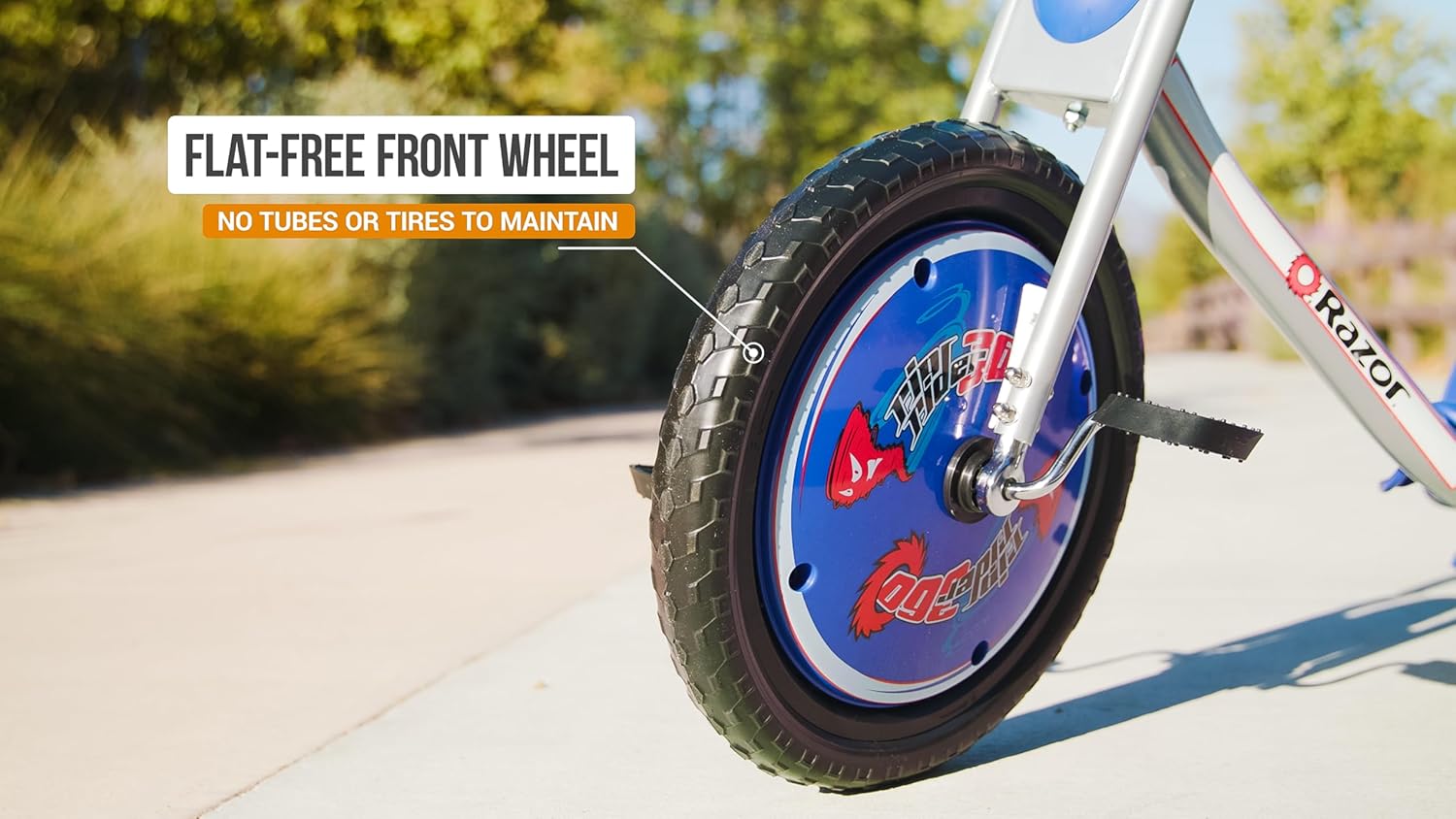 Le doppie ruote inclinate consentono un'azione di drifting e rotazione senza resistenza Nuovi sistemi a ruota libera per incredibili velocità di marcia Manubrio stile MX con impugnature in gomma Hi-Impact, tallone anteriore con pneumatico senza piatto Design a doppia corona