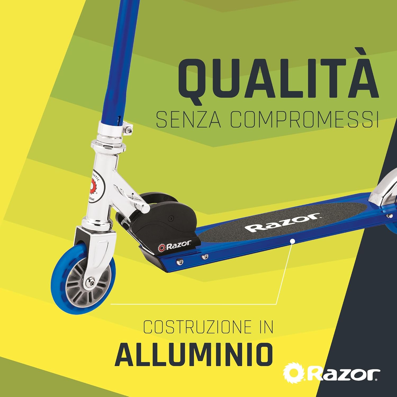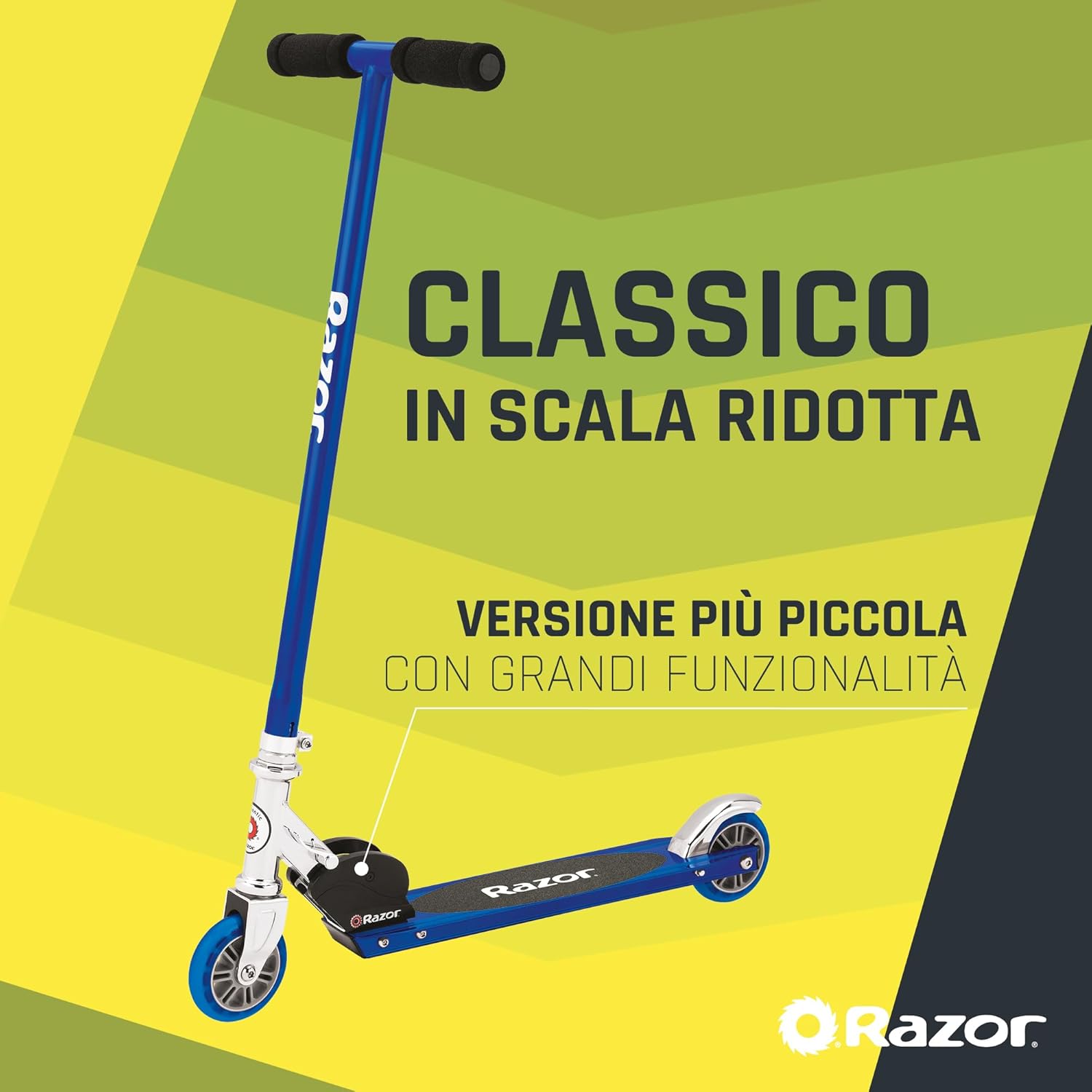 Età: 6+, Peso massimo del conducente: 100 kg Lo scooter Razor s è fatto con un tubo d'acciaio per fornire forza e stabilità indipendentemente da quanto lo scooter è usato sulle strade Il ponte di alluminio dello scooter è progettato per sostenere comodamente i bambini e gli adulti fino a 100kg (15St) di peso così facilmente affrontare qualsiasi bambino come crescono Le ruote in uretano sono in grado di affrontare le superfici più impegnative, fornendo presa dove necessario e durata nel tempo. Le maniglie in schiuma rendono facile mantenere il controllo dello scooter in ogni momento I monopattini Razor sono facili da piegare e trasportare, e si adattano praticamente a qualsiasi auto Boot e borsa, così i vostri bambini possono portarli ovunque facilmente nei giorni fuori Il Razor è progettato per essere divertente da guidare e ispirare i vostri bambini ad essere più attivi. Adatto per l'età 6 + con un semplice da usare freno parafango posteriore per tenerli al sicuro mentre si stanno godendo l'aria aperta
