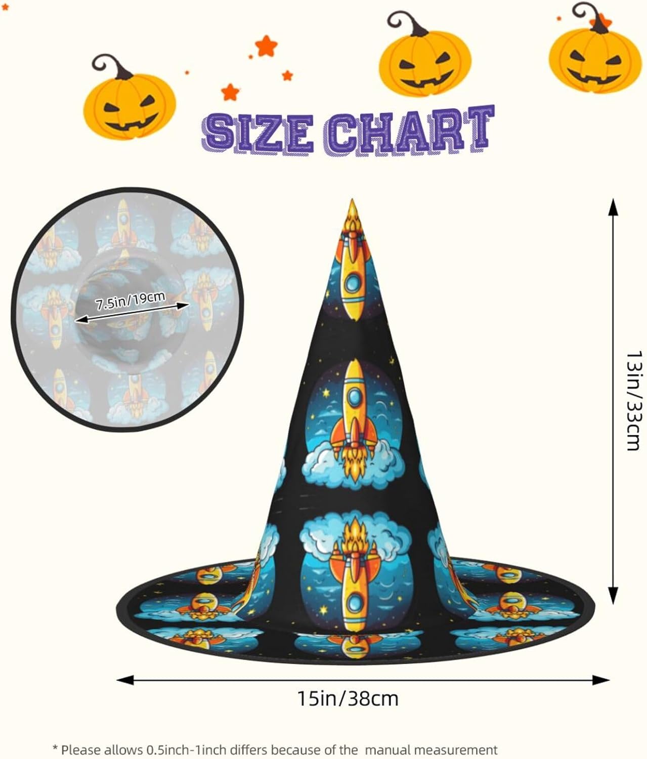 Fai Un'Impressione Questo Razzo Clipart Nave Spaziale Stampa Halloween Con La Nostra Splendida Decorazione Cappello Strega. Costruito in tessuto Oxford, questo cappello di Halloween con stampa di nave spaziale Rocket Clipart offre comfort e durata, promettendo un accessorio di Halloween che resisterà alla prova del tempo. Il suo design unico permette di essere piegato e attorcigliato per risparmiare spazio, e il materiale leggero lo rende facile da trasportare. Con un'attenta costruzione accessoria, è realizzato per adattarsi alla maggior parte delle persone, assicurando che tutti possano godersi le feste di Halloween. Che tu sia fuori a una festa, Carnevale, mascherata o semplicemente godere di gioco di ruolo, il nostro razzo clipart Space Ship Print Witch Hat promette di essere la vita dell'evento. Inoltre, la manutenzione è un gioco da ragazzi: basta gettarlo nel lavaggio ed è come nuovo.