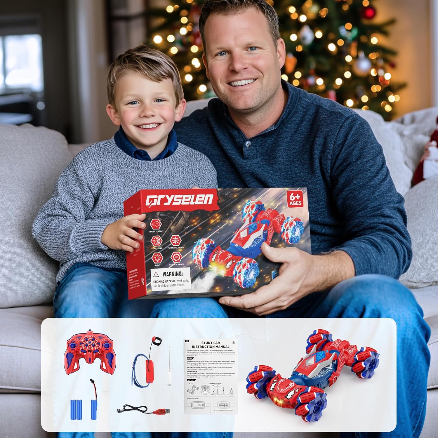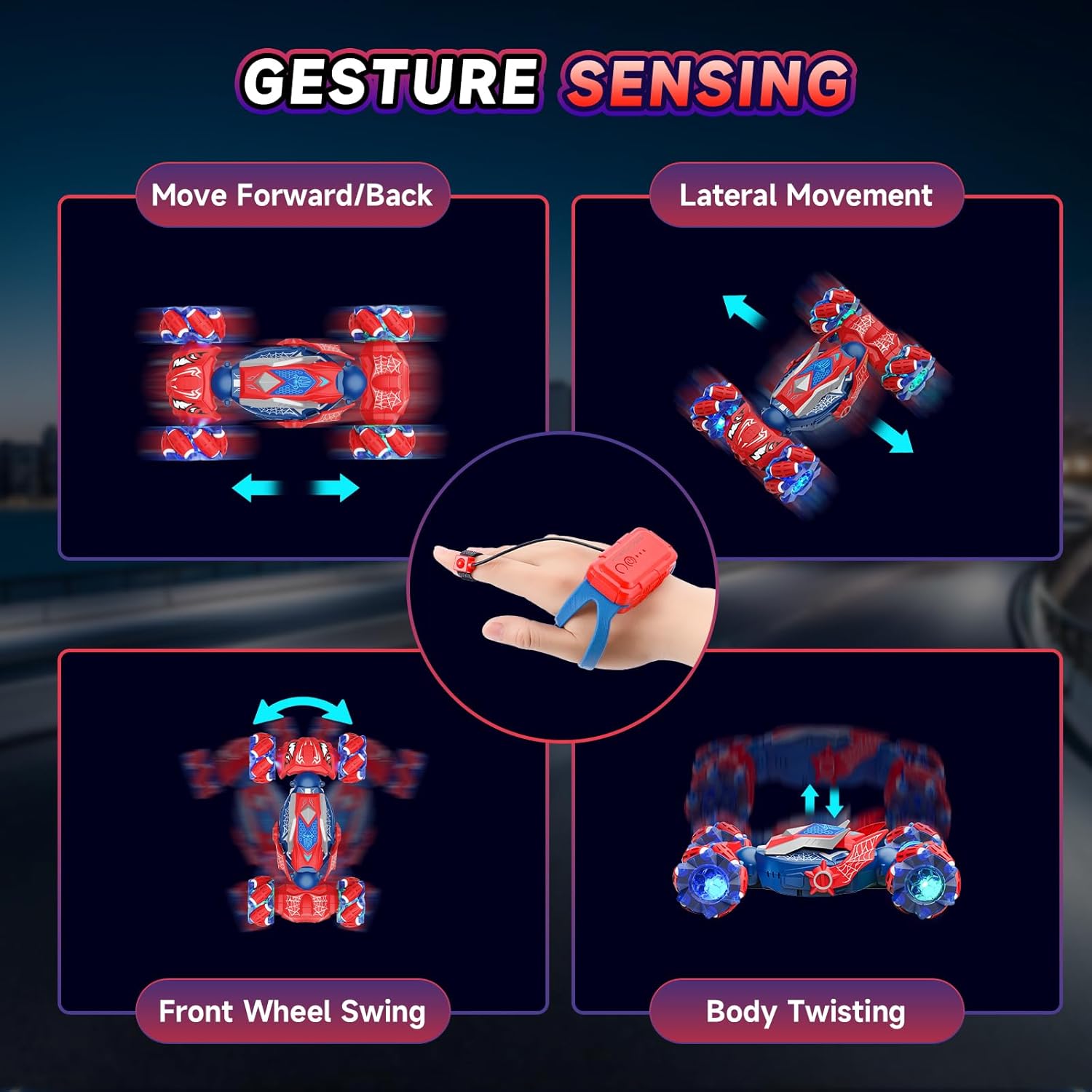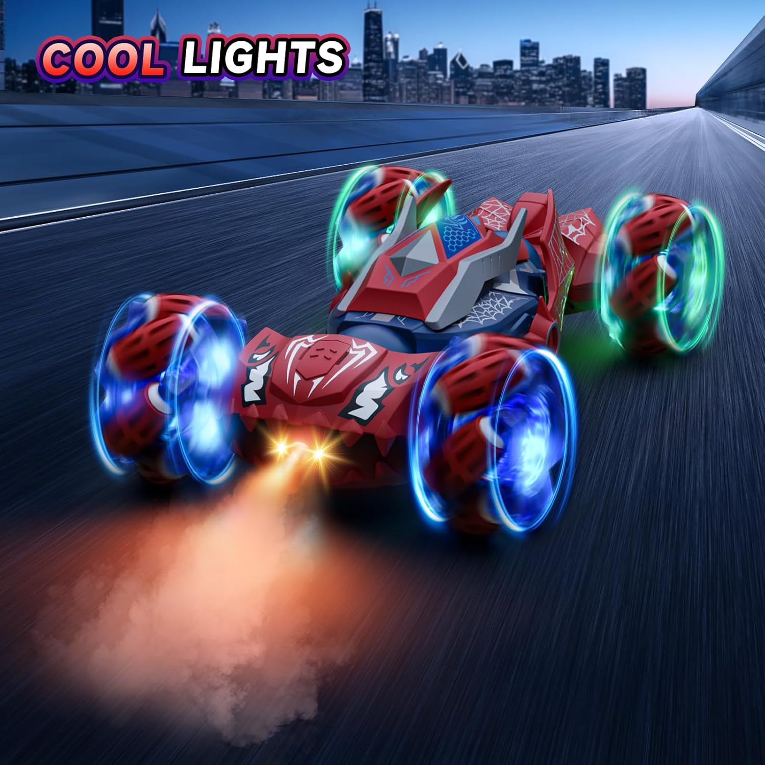 Molteplici modalità di controllo: meticolosamente realizzato, con una modalità a doppio controllo. Il telecomando gesture offre un funzionamento flessibile e intuitivo. È molto divertente da controllare e porta un nuovo livello di esperienza di gioco Splendide luci abbinate al fumo: le nostre auto RC (telecomando) utilizzano la tecnologia di controllo remoto a 2,4 GHz che consente a più auto di operare contemporaneamente. Queste auto sono dotate di luci a LED e la parte anteriore dell'auto può emettere uno spruzzo di nebbia. La combinazione di luci e nebbia sembra estremamente interessante migliorando la visibilità notturna e rendendo il gameplay ancora più emozionante Prestazioni potenti: dotato di un motore ad alte prestazioni fornisce una forte forza motrice. Con capacità di guida laterale, le ruote sono composte da più rulli acrobatici. Può andare alla deriva in tutte le direzioni ed eseguire giri a 360 gradi. Il corpo è dotato di molle che consentono di ruotare a sinistra e a destra e può essere sollevato e abbassato 2 modalità per tutti i terreni: le articolazioni bioniche sono progettate per conquistare prati di ghiaia, spiagge, scale e tappeti. Ciò consente all'auto acrobatica di trasformarsi dalla modalità strada alla modalità fuoristrada in pochi secondi. Può anche salire su alcuni pendii e non cadrà a pezzi quando colpisce il terreno Regalo divertente: questa auto telecomandata è un regalo divertente per bambini dai 4 anni in su. Il telecomando è progettato semplicemente con pochi pulsanti e un funzionamento intuitivo che consente ai bambini di impararlo rapidamente. Che si tratti di una riunione di famiglia o di un'attività all'aperto, può portare gioia ed eccitazione infinite