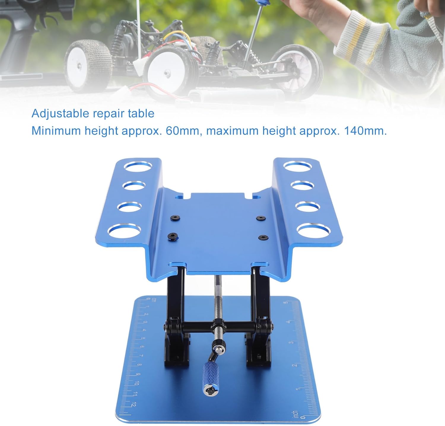 Versatilità: la piattaforma di riparazione è adatta per i modelli di auto RC in scale 1: 8 e 1:10. Questa adattabilità ti garantisce di poter utilizzare la stessa piattaforma per più scopi, migliorando la convenienza e l'efficienza del tuo lavoro. Uso ampio: che si tratti di un banco di riparazione o di un supporto per il display, può soddisfare le tue esigenze. Stand di riparazione regolabile: il supporto per la riparazione regolabile ha un'altezza minima di circa 60 mm e un'altezza massima di circa 140 mm. Con la sua funzione regolabile in altezza, il rack di riparazione consente di trovare una posizione comoda per lavorare sui modelli di auto. Design rotabile e regolabile in altezza: la piattaforma di supporto e riparazione display è dotato di un design modificabile e regolabile in altezza, rendendolo comodo per le riparazioni delle auto e i modelli di mostrare. Supporto stabile: il supporto per la riparazione del metallo simulato è costruito con supporto stabile, assicurando che non sia facilmente inclinato o agitato durante l'uso. Questa funzione non garantisce la sicurezza, ma migliora anche l'esperienza 'utente complessiva fornendo una base ferma.