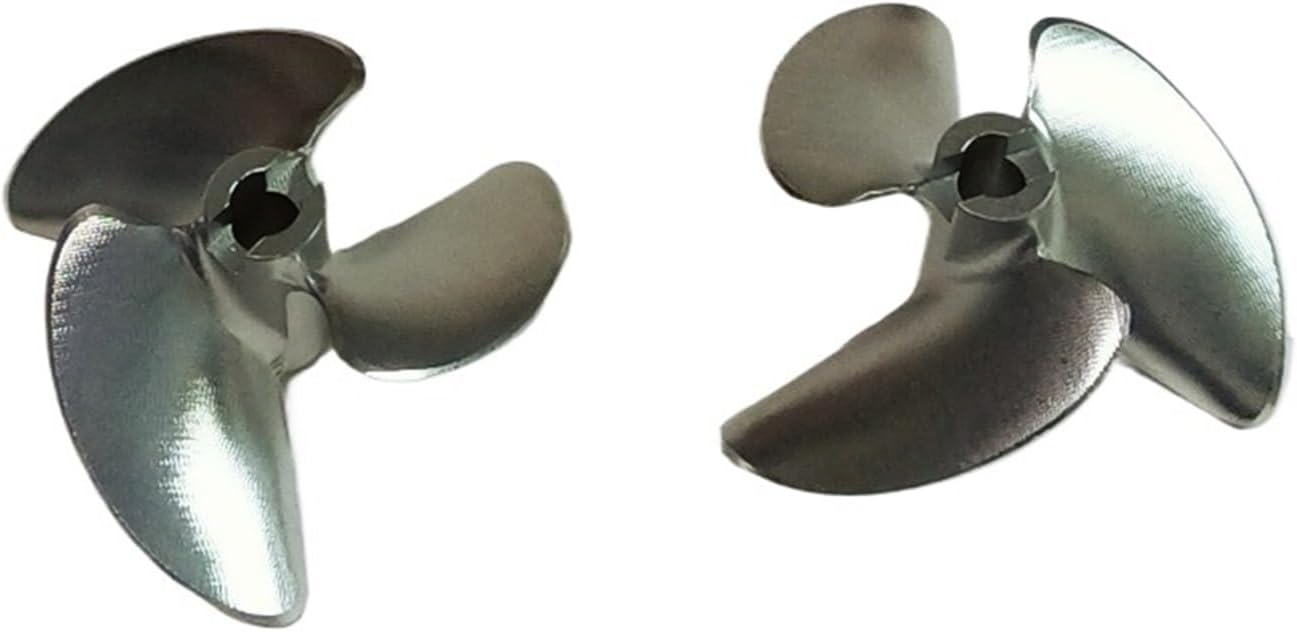 SIZE ADAPTABILITY: This propeller is designed for 46-48mm diameter shafts, suitable for O series RC boat models, ensuring good compatibility and applicability. MATERIAL AND CRAFT: Made of CNC aluminum alloy, CNC machining ensures the propeller's precision and surface finish. THREE-BLADE DESIGN: The three-blade propeller design provides good propulsion efficiency and maneuverability, which is suitable for RC boat model's quick response and maneuvering on the water. FORWARD AND REVERSE FUNCTION: With forward and reverse function, the forward oar rotates clockwise to provide forward power, and the reverse oar rotates counterclockwise to provide forward power as well, which increases the maneuvering flexibility of the boat model. PITCH 1.4: Pitch 1.4 means the distance the paddle blade moves along the axial direction when rotating for one week, this parameter affects the speed and thrust of the boat model, and the pitch of 1.4 is suitable for RC boat models pursuing balanced performance.