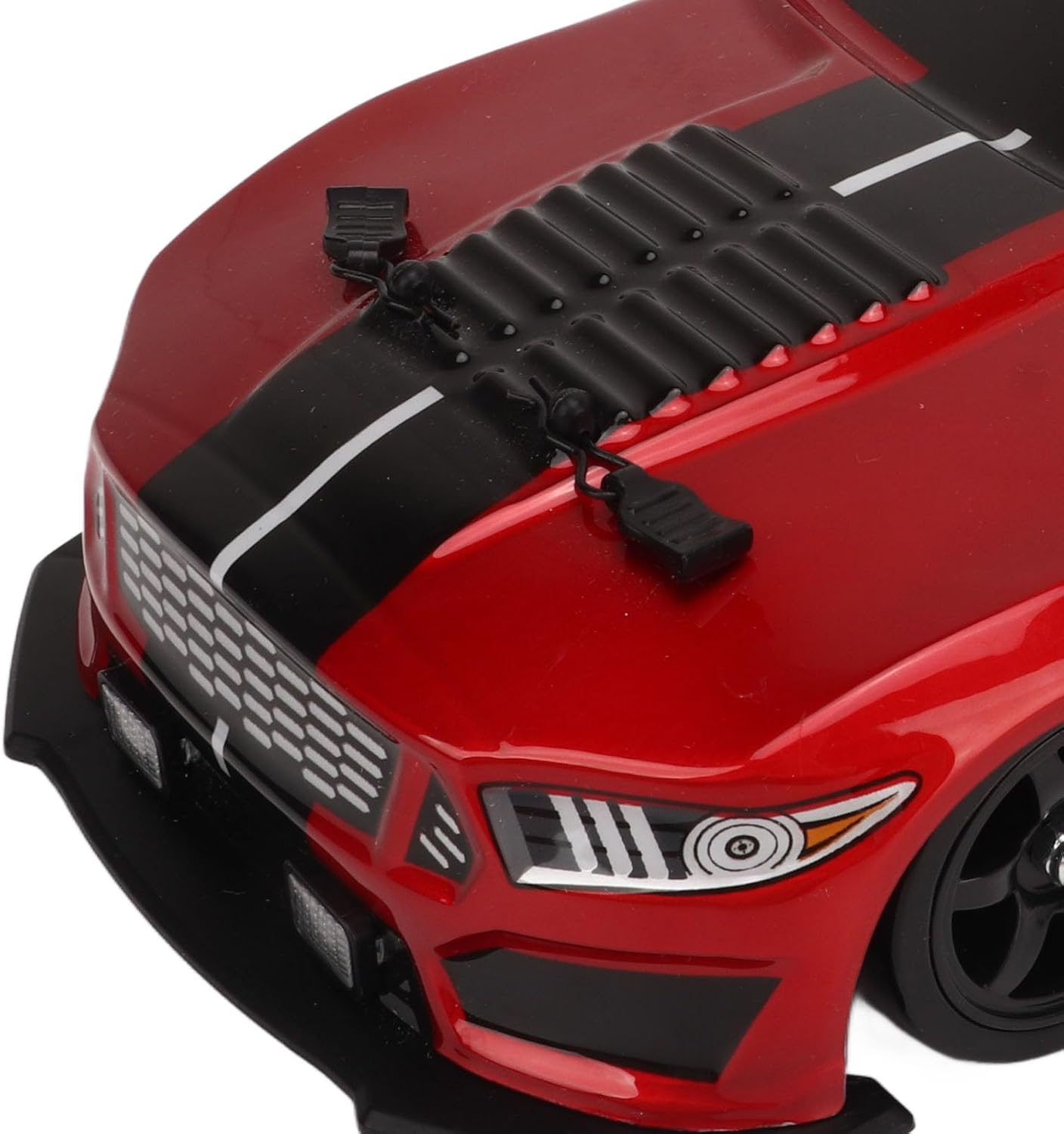 Prestazioni ad alta velocità: l'auto RC veloce è costruita per i richiedenti del brivido, raggiungendo velocità fino a 18 km/h con una gestione reattiva. Con un di trazione integrale e potenza, questa auto a telecomando porta una vera eccitazione su ogni superficie della pista. Capacità di deriva dinamica: queste auto RC ad alta velocità dispongono di sistemi di sospensione anteriori e posteriori indipendenti per curvatura liscia e deriva controllata. I pneumatici TPR sostituibili facilitano il passaggio tra la guida di presa e le corse alla deriva in qualsiasi momento. Elegante illuminazione a LED: l'auto a LED e l'auto remota per i bambini con le luci sono dotati di luci frontali luminose per migliorare la visibilità e aggiungere un effetto fresco durante il gioco notturno. L'elegante design del corpo e il guscio dipinto portano un'atmosfera da corsa realistica che i bambini amano. Materiale premium: questo veicolo modello ad alta velocità include un guscio addominali duro, componenti in PVC che assorbono l'impatto e clip per il corpo rinforzati per proteggere l'elettronica interna. Questa auto giocattolo sportiva da corsa è pronta ad affrontare collisioni e ostacoli. Controllo del segnale stabile: queste auto telecomandate ad alta velocità offrono una distanza di controllo estesa fino a 35 metri senza interferenze. Il di accoppiamento automatico consente a più veicoli di funzionare contemporaneamente senza sovrapposizione del segnale, idea per il divertimento delle corse di gruppo