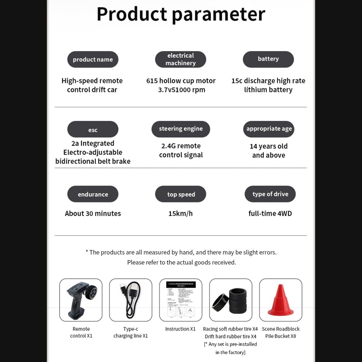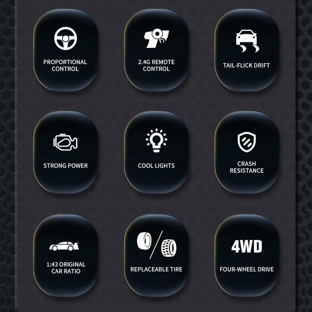 Design realistico e sistema 4WD: corpo elegante e a basso profilo con 4WD a tempo pieno e cuscinetti integrati per una guida fluida e ad alte prestazioni Potente batteria Drift & Safe: il telaio ad alta velocità consente derive taglienti; protezione integrata contro sovraccarico e sovracorrente Controllo preciso e alta velocità: il telecomando proporzionale da 2,4 GHz offre un controllo reattivo e velocità fino a 15 km/h per divertimento interno o esterno Comodità pronta all'uso: viene fornito completamente assemblato con una batteria ricaricabile e un caricabatterie USB: basta caricare e iniziare a correre! Ottimo regalo: perfetto per giovani e famiglie. Incoraggia il gioco all'aperto, rendendolo un regalo ideale per vacanze o eventi speciali