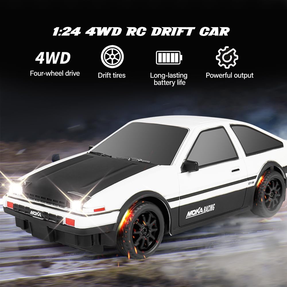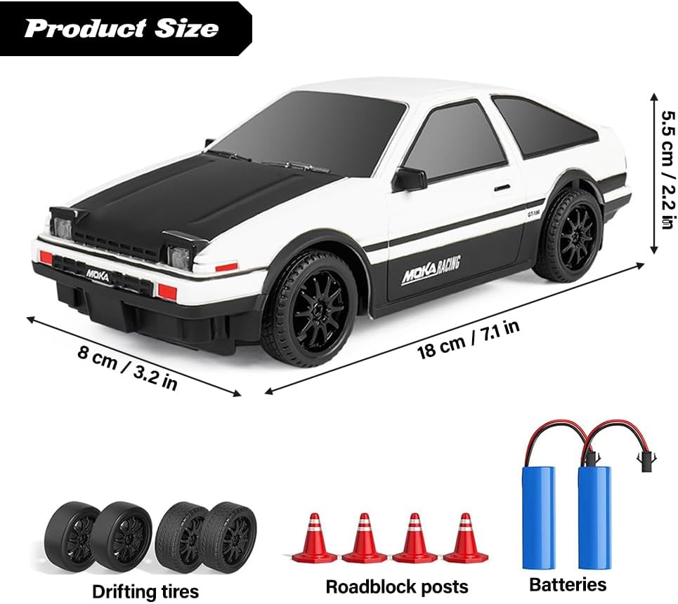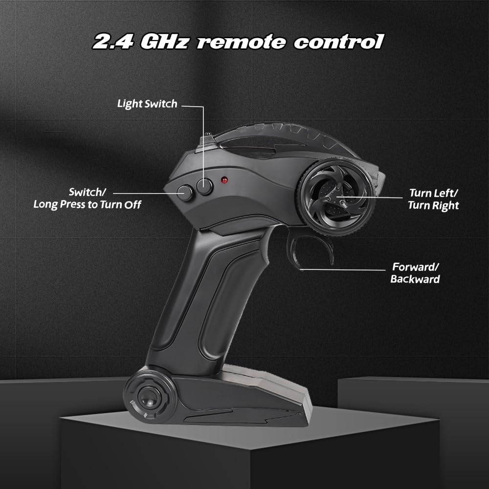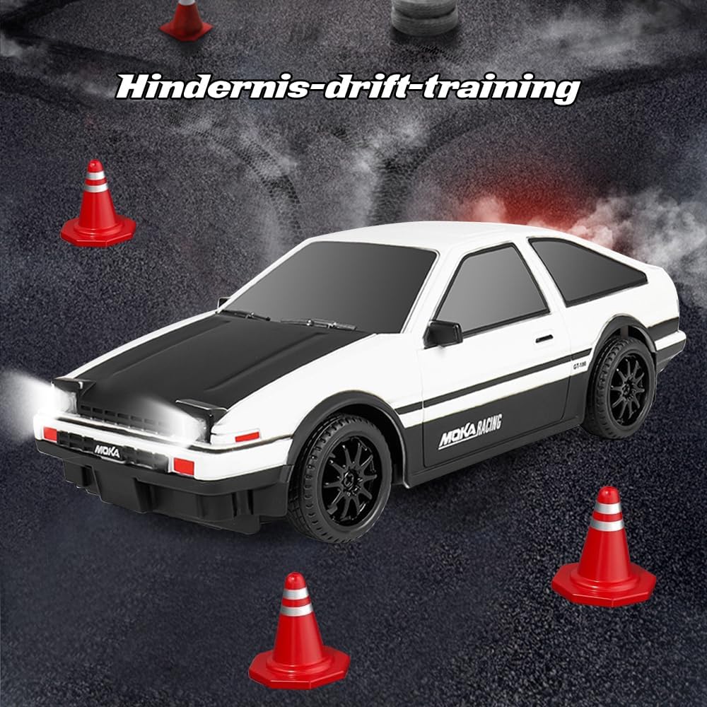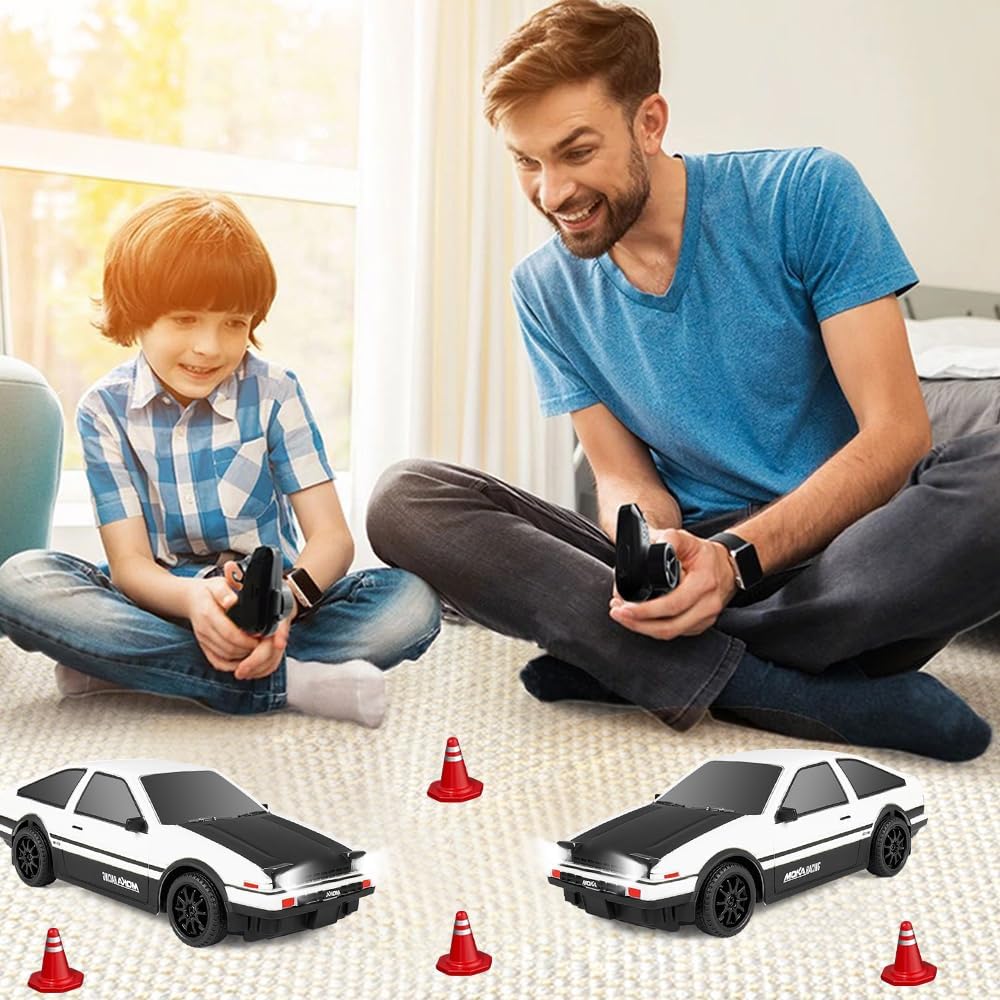 【Auto da Drift ad Alta Velocità Telecomandata】Questa 1:24 mini macchina telecomandata drift è piccola, leggera e in scala 1:24, ha un aspetto accattivante e realistico e può raggiungere una velocità di 25 km/h. Questa RC drift car telecomandata è dotata di un sistema di trazione integrale, distribuisce le forze in modo sensato durante il processo di stampaggio e genera una coppia maggiore. Che si acceleri in rettilineo o in curva, è facile da controllare e offre ai bambini un divertimento assicurato 【Controllo di Precisione a 2,4 GHz】L'RC drift car è dotata di un telecomando con impugnatura a pistola che utilizza una tecnologia integrata a 2,4 GHz stabile e senza interferenze, supportando più auto RC per drifting e corse simultanee senza interferenze di segnale. Il telecomando portatile a forma di pistola è semplice e facile da usare, consentendo anche ai principianti di padroneggiare rapidamente e godersi la gara 【Materiali di Alta Qualità】L'1:24 mini macchina telecomandata drift è realizzata in PVC ad alta resistenza ed è resistente alle cadute e agli urti. RC drift car inoltre dotata di una scocca anticollisione rimovibile e di un telaio anticaduta per garantire che il veicolo rimanga intatto anche durante la guida intensa. Gli pneumatici sono realizzati in gomma di alta qualità, elastici e resistenti. Prevengono lo scivolamento e non presentano spigoli vivi. Garantiscono una guida fluida anche nelle curve veloci 【Luci Fantastiche】L'auto giocattolo è dotata di luci anteriori ad alta luminosità, che consentono di giocare al buio, rendendo la guida notturna più attraente e aggiungendo un ulteriore livello di realismo alle avventure di esplorazione e corsa del bambino. L'RC drift car con luci a LED è dotata di una batteria al litio da 3,7 V 500 mAh e di un cavo di ricarica USB, che offre 30 minuti di intrattenimento 【Regalo Perfetto】L'1:24 mini macchina telecomandata drift sembra un'auto sportiva simulata, permettendo ai bambini di provare il divertimento della guida. L'RC drift car è impeccabile dall'aspetto alle prestazioni ed è un regalo perfetto per innumerevoli ragazzi e bambini per compleanni, Halloween, Natale, Ringraziamento e altre festività importanti. Permette loro di sviluppare le capacità motorie e la coordinazione occhio-mano divertendosi