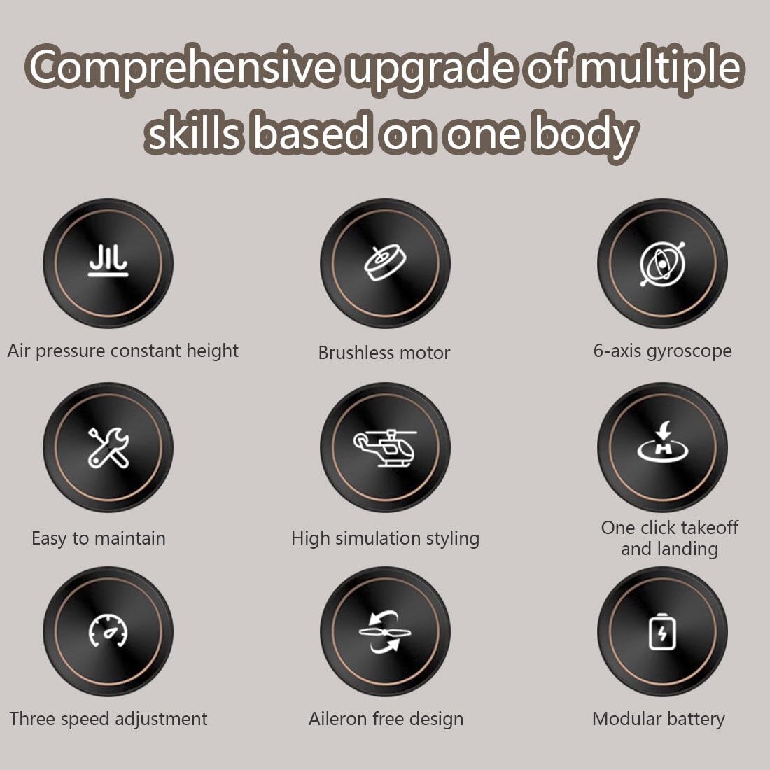 Elicottero RC C189 realistico: prova il brivido del volo con questo elicottero MD 500 C189 RC incredibilmente dettagliato in scala 1:28. Questo potente elicottero radiocomandato è modellato sul leggendario aereo Little Bird e cattura il design sottile e il movimento agile del vero elicottero. Due motori brushless: dotato di due motori brushless per una maggiore potenza, un'eccellente resistenza al vento e una maggiore durata. Il giroscopio a 6 assi garantisce un volo ultra stabile ed è quindi perfetto per i principianti. Volo versatile: dotato di un sistema di controllo a 4 canali a 2,4 GHz, questo elicottero RC garantisce una maneggevolezza precisa e prestazioni di volo fluide. Può eseguire salita/discesa, volo avanti/indietro, volo laterale, curve e rollstunt, nonché funzioni di decollo e atterraggio con un solo pulsante. Protezione di sicurezza: supporta la regolazione dell'altezza del barometro e il posizionamento ottico del flusso opzionale per un volo stabile. Include un allarme a bassa tensione, protezione anti-sovraccarico e protezione fuori controllo per una maggiore sicurezza Batteria modulare: design della batteria modulare con un sistema di gestione dell'energia intelligente per una facile installazione e una maggiore durata della batteria. Dispone di decollo/atterraggio con un pulsante e conversione di dimensione del timone per un funzionamento facile da usare.