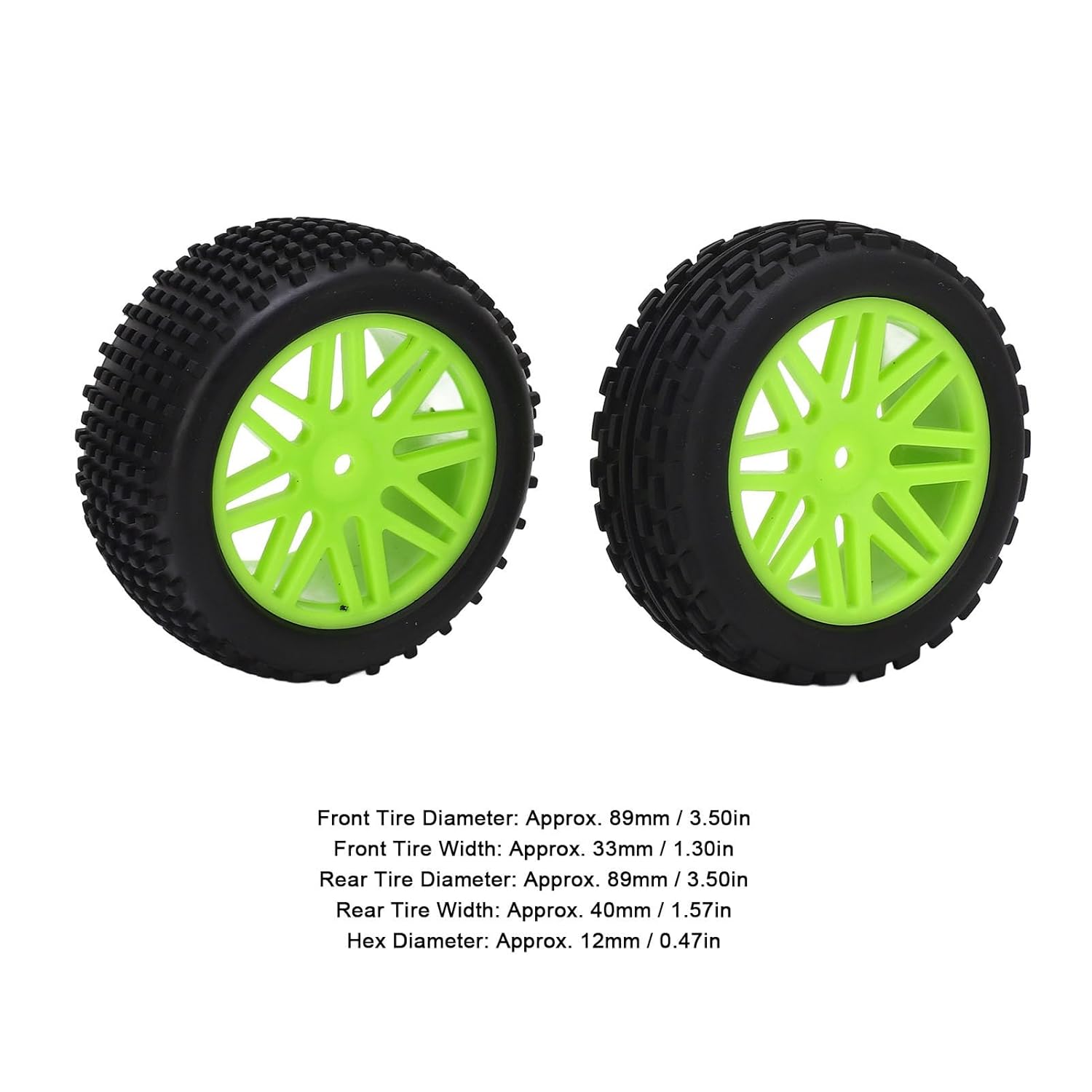 [Pneumatici per auto RC] Questi pneumatici per auto RC offrono un'ottima presa e trazione per emozionanti corse fuoristrada. [Prestazioni avanzate] Larghezza del pneumatico anteriore di 33 mm e larghezza del pneumatico posteriore di 40 mm offre stabilità e controllo ottimale. [Compatibilità universale] Compatibile con i famosi marchi di auto RC in scala 1/10 per migliorare le prestazioni su qualsiasi superficie. [Durata duratura] Fatta da un mix di gomma e plastica, queste ruote sono costruite per resistere ai rigori delle corse fuoristrada. [Easy Installation] Basta scambiare i tuoi vecchi pneumatici con questi per migliorare le prestazioni e l'aspetto.