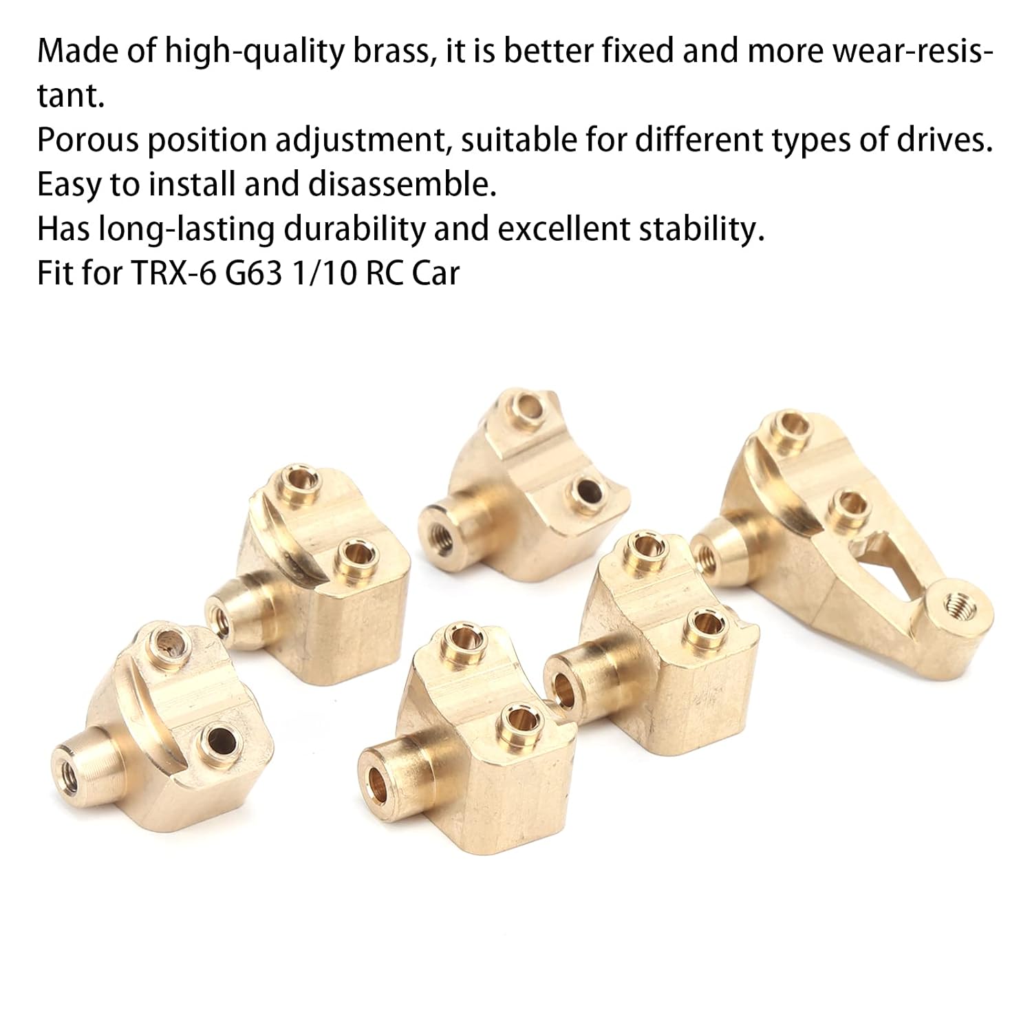 [Materiale di alta qualità] realizzato in materiale in ottone di alta qualità per una migliore durata e resistenza all'usura. [Design regolabile] presenta una regolazione della posizione porosa, adatta a varie unità, che offre una gamma più ampia di applicazioni. [Installazione facile] Installazione e smontaggio semplici e convenienti, fornendo uso affidabili e durevoli. [Durabilità di lunga durata] offre un'eccellente stabilità e una lunga durata per un uso prolungato. [Aggiorna la tua auto RC] Ottimi accessori per migliorare l'auto di controllo remoto, appositamente progettata per -6 G63 1/10 Auto RC.