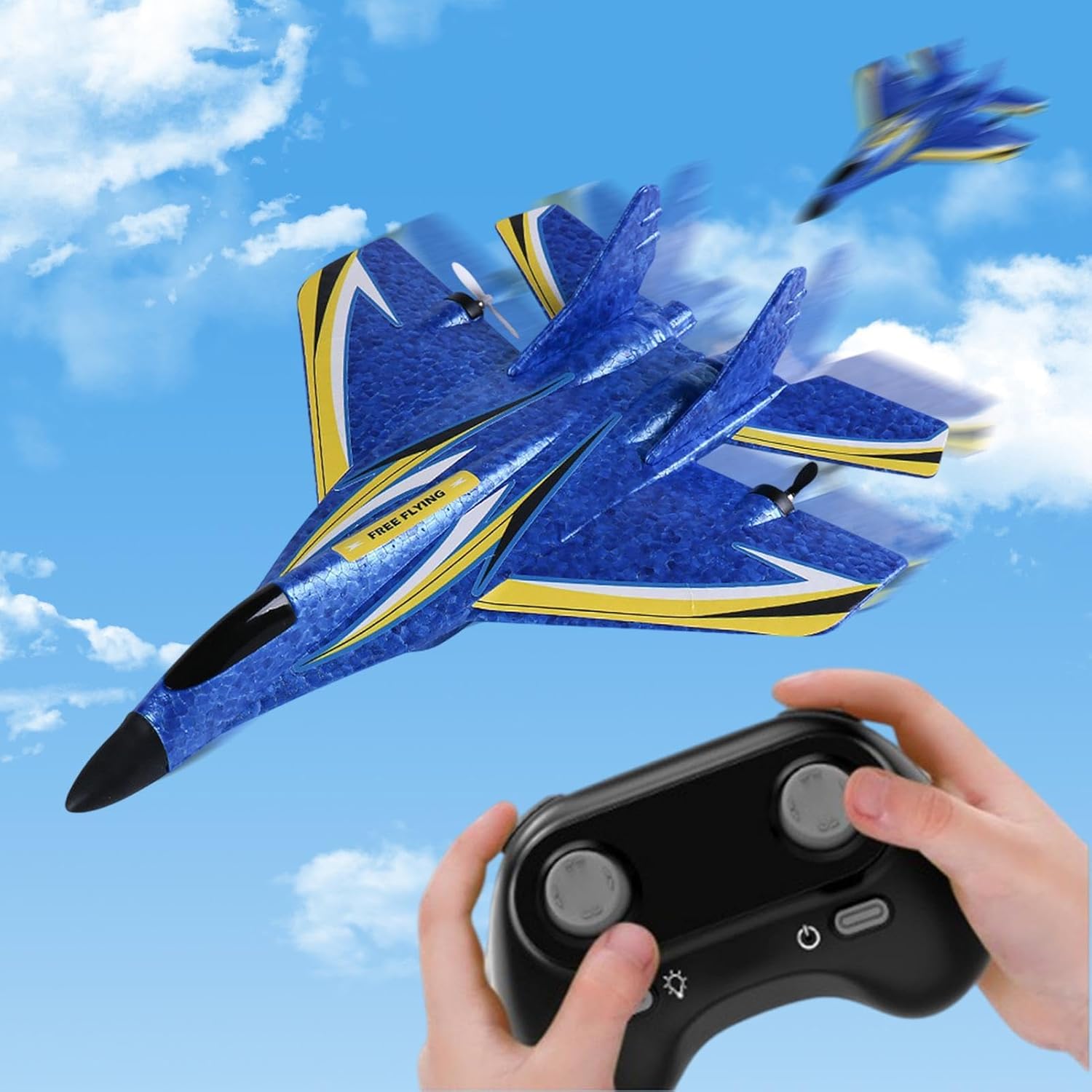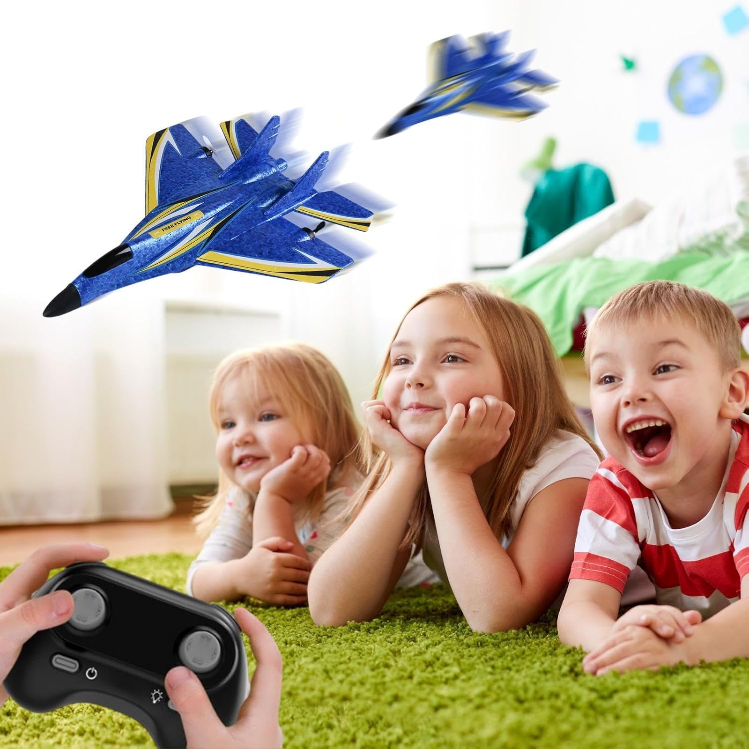 Enhanced Flying Experience: With its advanced double engine motor technology, remote control airplane delivers stronger power output for more stable and exhilarating flying performances 2.4 Ghz Remote Control: advanced 2.4 GHz remote control technology ensures a stable connection without interference, delivering a seamless flying experience. With stable signal transmission, enjoy effortless maneuverability like never before Anti-Collision Silicone Design: With Anti-Collision Silicone Design, remote control airplane has an enhanced ability to withstand crashes, reducing damage and protecting the main structure of the aircraft Vibrant Colors and Waterproof Design: With a waterproof function and LED colorful lights, remote control airplane is perfect for slightly humid environments. The built-in lighting system adds to the fun of flying by creating colorful effects Semplified Flying: Discover the joy of flying with remote control airplane. With easy-to-use controls, take-off, landing, and various stunts are a breeze, making it simple for children and beginners to master