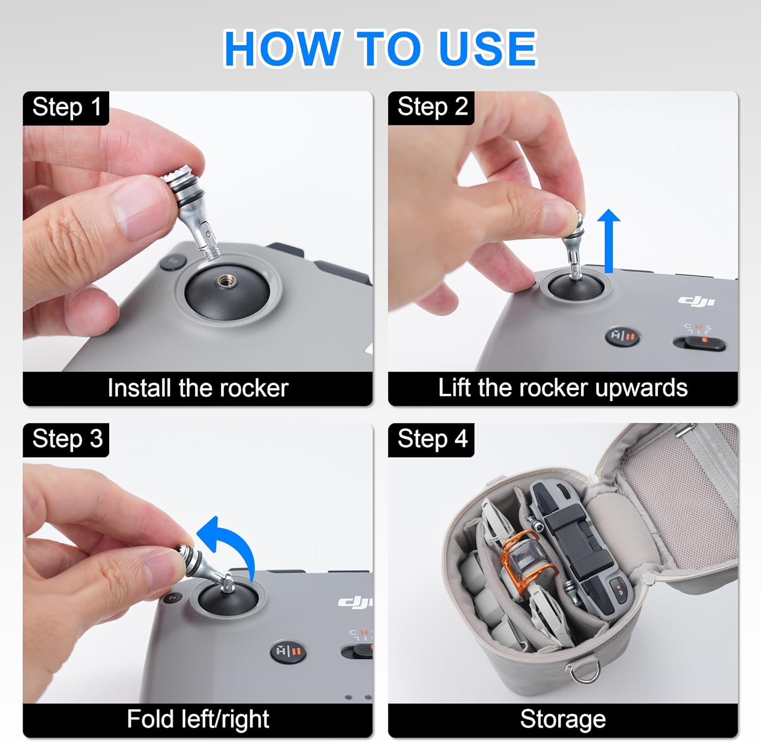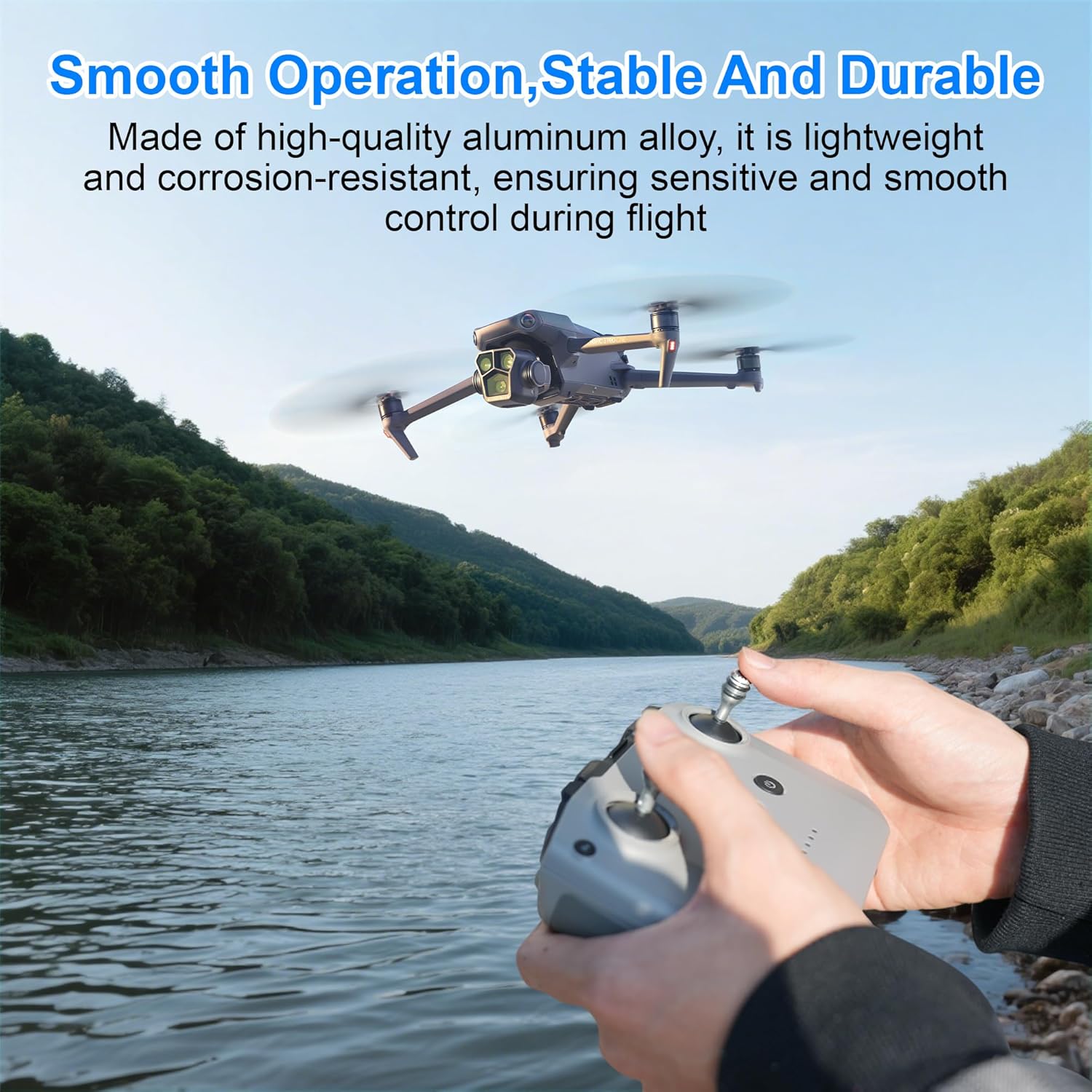 Design compatto e portatile: questi joystick pieghevoli presentano una struttura retrattile e pieghevole, che si restringe al 50% delle loro dimensioni originali per riporli facilmente nelle borse o negli zaini dei droni. Perfetto per viaggiare, fare escursioni o piloti di droni in movimento. Ampia compatibilità del drone DJI: progettato per DJI RC-N1/RC-N2/RC-N3, compatibile con DJI Flip/NEO/Mini 4K/Mini 4 Pro/Mini 3 Pro/Mavic 3/Mini 3/Mini 2/Mini 2 SE/Air 3 e altro ancora. Si blocca saldamente sul telecomando senza oscillare o scivolare. Sempre pronto: il dondolo pieghevole può essere rapidamente aperto e bloccato in posizione, pronto per funzionare in qualsiasi momento. Che si tratti di un compito urgente o di un'ispirazione improvvisa, può rispondere rapidamente per non farti perdere nessun momento meraviglioso. Costruzione in lega di alluminio premium: realizzati in lega di alluminio aerospaziale leggera ma resistente, questi bastoncini resistono alla ruggine, alla corrosione e all'usura fornendo al contempo un controllo fluido e reattivo durante i voli. Configurazione rapida e installazione senza attrezzi: questi joystick si agganciano facilmente al controller in pochi secondi, senza viti o attrezzi. Quando finisci di usarli, piegali semplicemente per riporli, senza bisogno di smontarli di nuovo, rendendoli facili da usare la prossima volta. Presa ed ergonomia migliorate: la superficie strutturata antiscivolo e gli angoli ergonomici offrono comfort e precisione superiori, riducendo l'affaticamento della mano durante lunghe sessioni FPV o riprese cinematografiche.