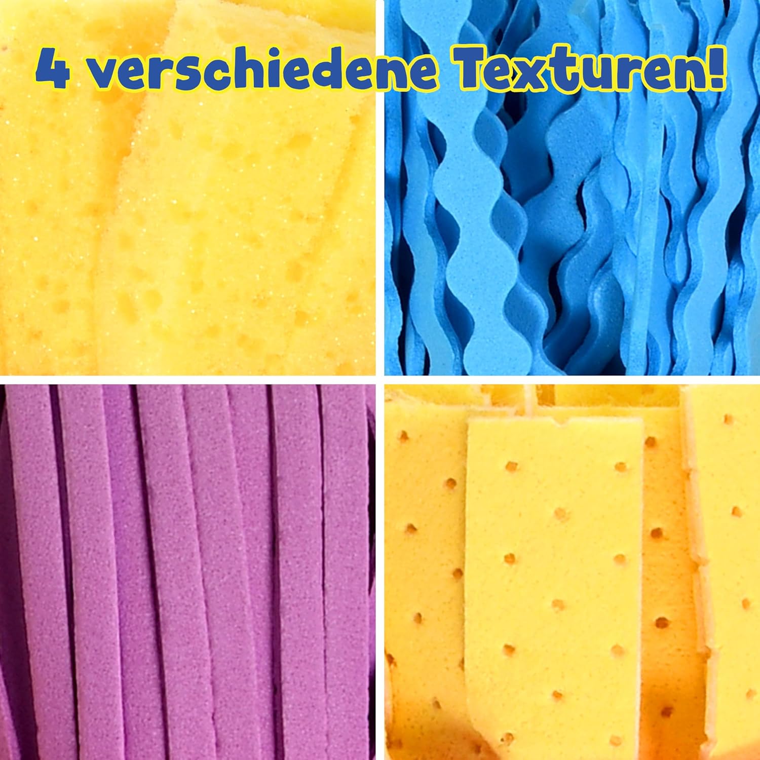 4 STRUTTURE PER PICCOLI ARTISTI - Questi pennelli da pittura strutturati hanno manici in plastica di facile presa con 4 punte diverse: strisce di pelle scamosciata, strisce di spugna, tagliatelle di schiuma e strisce di schiuma a zigzag. GRANDI DIMENSIONI = MANIGLIA MIGLIORE - Con una lunghezza di circa 14 cm e un diametro del manico affusolato fino a 3,2 cm, questi pennelli testurizzati sono perfetti per i più piccoli! CREA EFFETTI ARTISTICI: scarabocchia, gira, segna e gira! I bambini adorano aggiungere motivi e trame emozionanti alle loro creazioni dipinte. AIUTO PER ESIGENZE SPECIALI - Le maniglie grandi e robuste sono perfette per le persone con bisogni speciali. Consentono un maggiore controllo artistico e indipendenza. SICURO E NON TOSSICO - Tutti i materiali sono stati testati e conformi agli standard europei. Testato e approvato per bambini dai 3 anni in su. PULIZIA FACILE - Al termine del tempo creativo, gli strumenti artistici strutturati possono essere puliti con acqua e sapone tiepido. ARTIGIANATO SENZA LIMITI - Crea come se non ci fosse un domani! A READY 2 LEARN l'attenzione è rivolta ai bambini, siamo creativi e impegnati per la qualità.