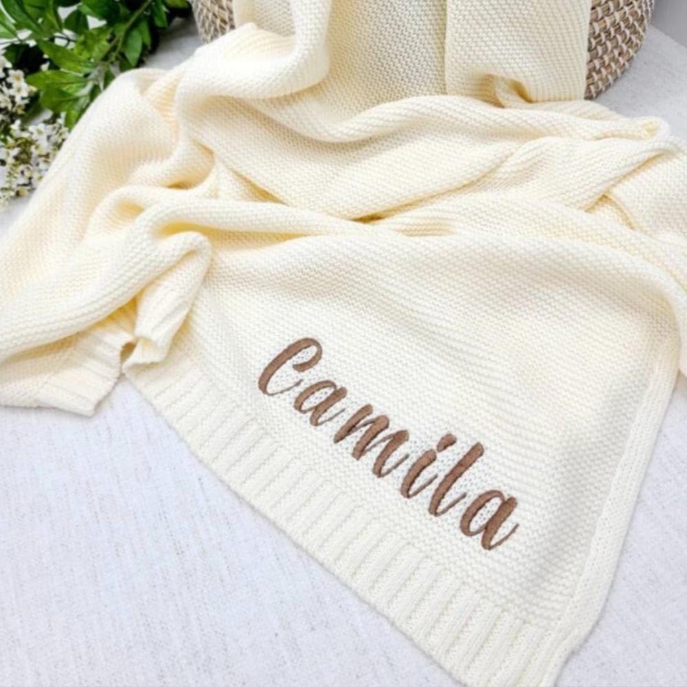 COPERTA PERSONALIZZATA PER NEONATI: la nostra coperta per neonati a maglia personalizzata è un accessorio adorabile per tenere il bambino al caldo e al riparo tutto l'anno. Perfetta per essere utilizzata come carrozzina o culla, coperta per l'allattamento, coperta e naturalmente per le coccole. REGALO PERSONALIZZATO PER IL BAMBINO: disponibile in un'ampia gamma di colori allegri e divertenti che si adattano alla stanza del bambino o al vostro stile personale. Che preferiate i colori pastello o le tonalità vivaci, le nostre coperte personalizzate per neonati vi coprono. Coperte personalizzate per bambina: le nostre coperte per bambina sono realizzate in tessuto a maglia di alta qualità, morbido sulla pelle delicata del bambino. Forniscono uno strato di calore leggero e accogliente e sono perfette per essere utilizzate tutto l'anno. Coperta per neonati personalizzata: questa coperta per neonati personalizzata non solo offre comfort, ma è anche un prezioso ricordo. Con il nome del vostro bambino elegantemente ricamato sulla coperta, diventerà un ricordo speciale da conservare per gli anni a venire. COPERTA PERSONALIZZATA CON NOME: la nostra coperta personalizzata per neonati è il regalo perfetto per le vacanze, i compleanni o qualsiasi altra occasione speciale. È un regalo unico e premuroso che i genitori apprezzeranno sicuramente, e l'opzione di personalizzazione permette di creare un ricordo unico per il piccolo della vostra vita.