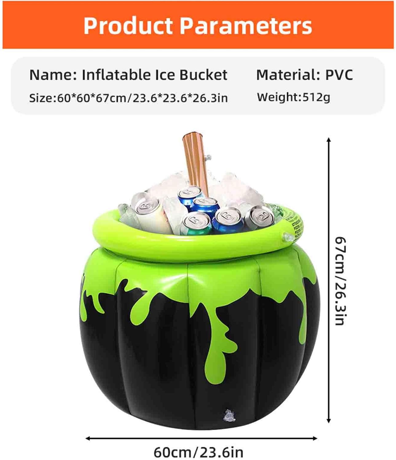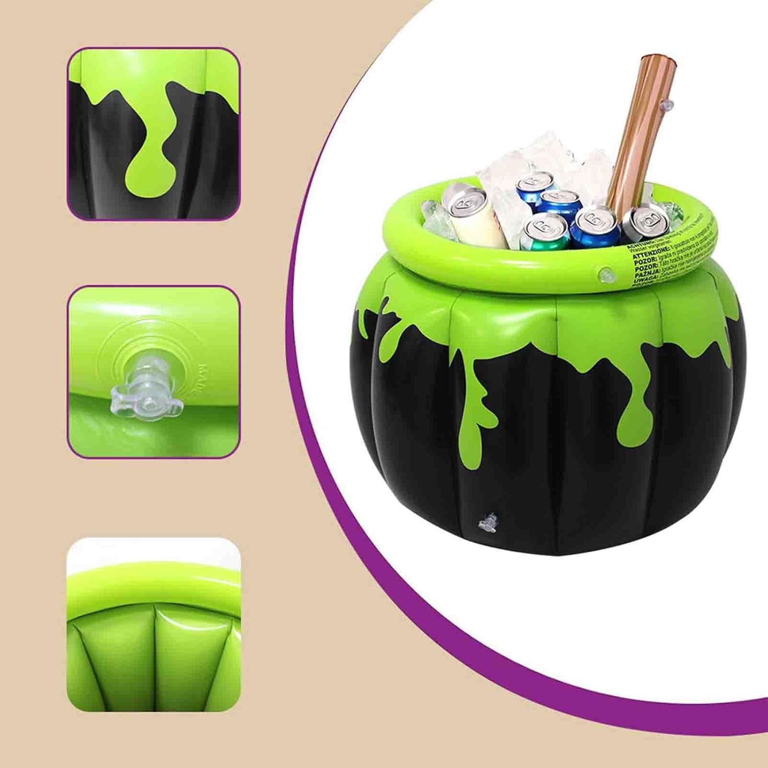 Trasporto semplice: Leggero e compatto quando sgonfiato, questo dispositivo di raffreddamento gonfiabile assicura un rapido gonfiaggio e sgonfiaggio per un facile montaggio e conservazione senza attrezzi, essendo altamente portatile per varie occasioni e avventure. Design Caldero: un'atmosfera avvolgente con questo dispositivo di raffreddamento gonfiabile ispirato al calderone da strega, offrendo un aspetto festoso e trasformandosi nel centro della tavola più accattivante per gli eventi di Halloween. Durabilità prolungata: realizzato in PVC ad alto spessore per la massima tenuta, resiste efficacemente agli urti e all'abrasione durante le attività all'aperto mantenendo la sua integrità strutturale ciclo dopo ciclo Design pratico: l'interno spazioso del dispositivo di raffreddamento gonfiabile Halloween tiene ampio ghiaccio e bevande. L'asta di miscelazione assicura un raffreddamento uniforme e prolungato, mantenendo le bevande fredde e rinfrescanti. Pronto per le feste: refrigeratore gonfiabile preparato per celebrazioni a tema e feste che migliora qualsiasi incontro con il suo uso versatile in molteplici occasioni e decorazioni