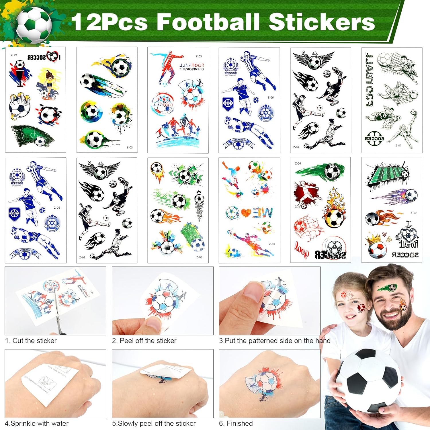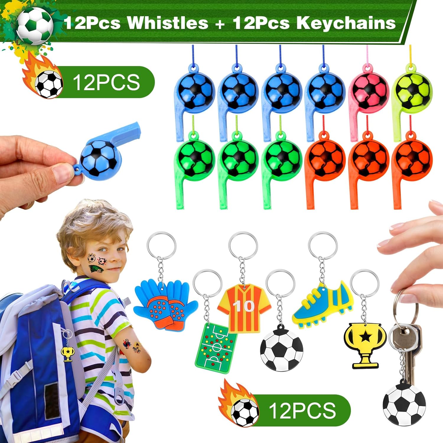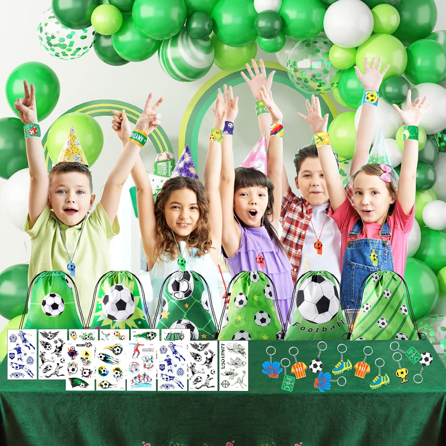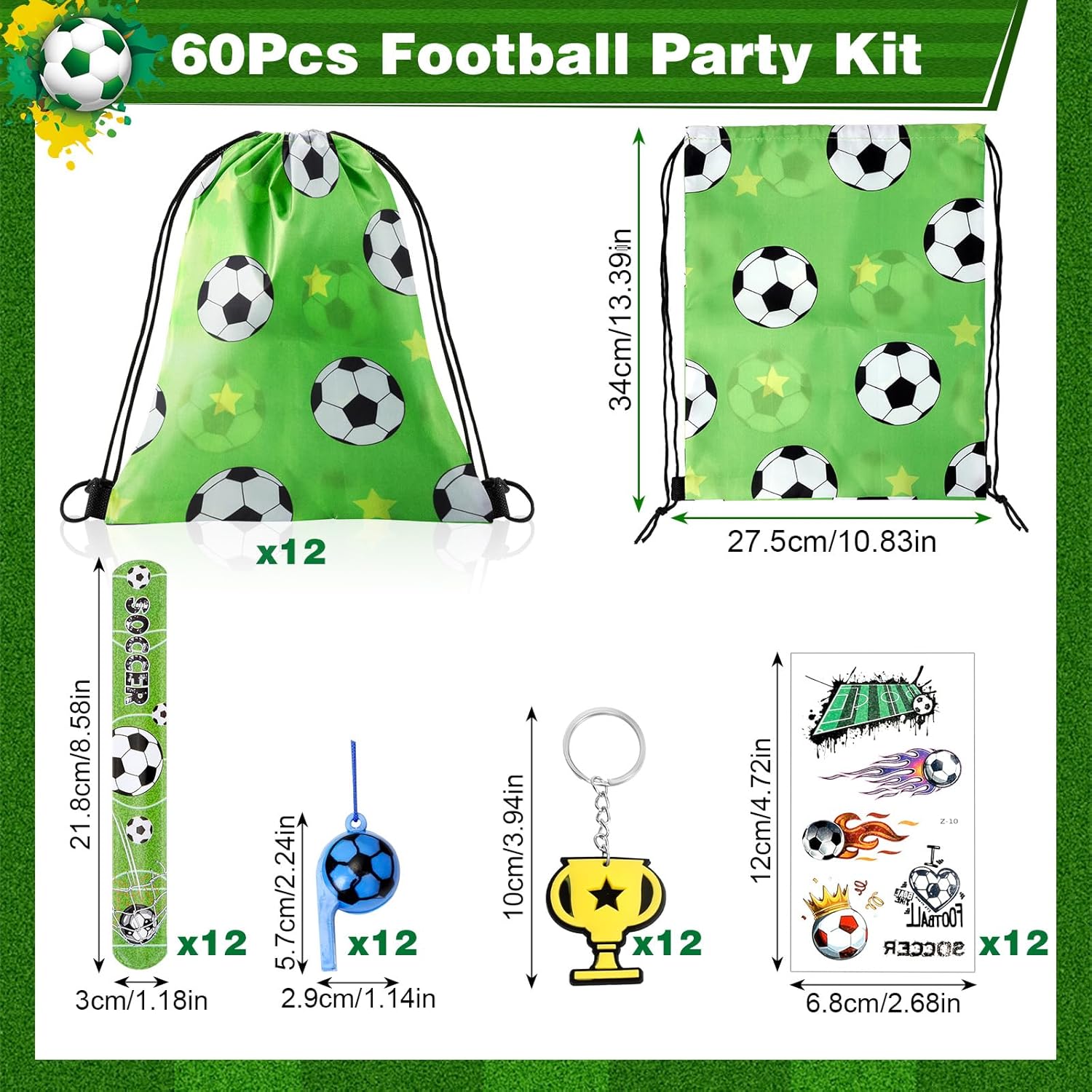 Un must per ogni piccolo appassionato di calcio: con questo set regalo verde e luminoso risveglierai la curiosità e l'amore per il calcio nei tuoi piccoli. Puoi regalarlo a qualsiasi bambino amante del calcio della tua zona! Adatto a bambini di tutte le età: i set regalo da calcio sono un fantastico accessorio giocattolo e sono ideali come regalo per diverse occasioni come compleanni dei bambini, Natale, Capodanno, spettacoli scolastici e carnevale. I colori vivaci e il design carino saranno amati dai più piccoli. Borsa da festa per il compleanno dei bambini: include 12 borse con cordoncino da calcio, 12 portachiavi da calcio, 12 braccialetti da calcio per bambini e 12 tatuaggi da calcio e 12 fischietti da calcio per soddisfare tutte le tue esigenze per una festa a tema calcistico. Bracciale a scatto: facile da usare e trasportare: il braccialetto da calcio è piccolo e facile da trasportare. Ogni dimensione aperta è di ca. 22*3 cm. I colori vivaci e gli elementi calcistici saranno amati dai più piccoli. Il braccialetto a scatto è adatto sia per bambini che per adulti. Borsa portaoggetti di grande capacità, adesivi per tatuaggi, fischietto e portachiavi: la borsa da calcio con coulisse di grande capacità è leggera e facile da trasportare e può essere utilizzata anche come borsa regalo. Gli adesivi autoadesivi sono facili da applicare e rimuovere senza lasciare residui. Il portachiavi è costituito sia da un anello di metallo che da silicone, morbido e resistente. Il fischietto è modellato a forma di pallone da calcio, molto creativo, deve piacere soprattutto ai bambini.