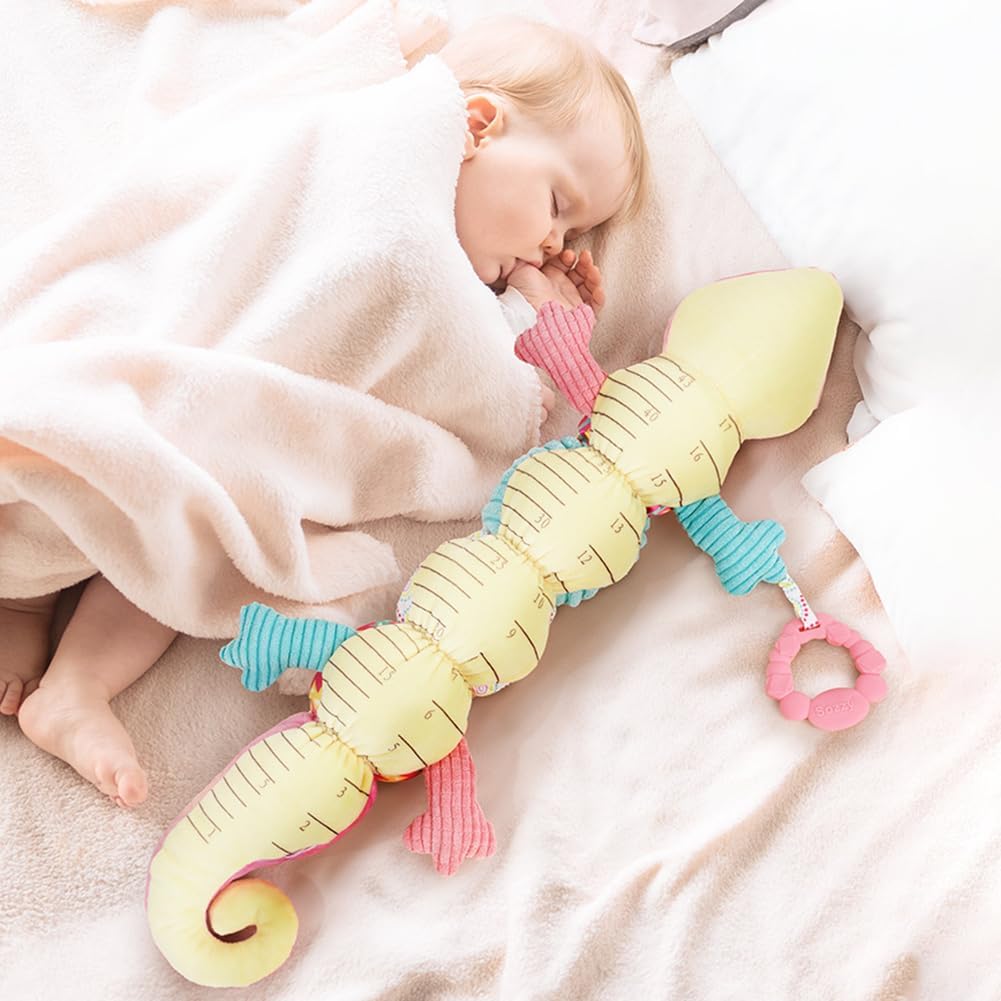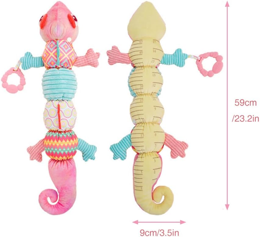 Peluche musicale: questo adorabile peluche ha un carillon nella testa che suona una melodia rilassante quando viene pizzicato. Ricorda ai bambini una musica piacevole e coltiva il loro interesse per la musica. È anche morbido e coccoloso, ottimo per coccolarsi e dormire Promuove lo sviluppo dell'udito e della vista: Giocattoli Il peluche musicale può emettere 4 suoni diversi: cigolio, campana, melodia, fruscio di carta. Questo può allenare la percezione del suono dei bambini. I bambini dai 3 mesi ai 3 anni sono nella fase di sviluppo della visione dei colori, i colori vivaci e i ricchi motivi grafici favoriscono il loro sviluppo visivo Giocattoli con righello per registrare la crescita del bambino: Il nostro giocattolo musicale a forma di bruco ha dimensioni contrassegnate sull'addome, disponibile con design a righello in cui i dati vengono visualizzati in cm o pollici. Il design unico del righello consente alle mamme di misurare l'altezza del bambino in qualsiasi momento. Il giocattolo Bruco musicale ti aiuterà a tenere traccia di quanto è cresciuto il tuo bambino Uso versatile: Questo giocattolo versatile è perfetto per il gioco, il tempo sulla pancia o per l'intrattenimento in movimento. Il design leggero lo rende facile da afferrare e manipolare per i bambini. Attaccalo a un passeggino o a un seggiolino per auto per tenere occupato il bambino durante le uscite Regalo perfetto: è un regalo premuroso per il baby shower o per il neonato, adatto per età pari o superiore a 0 mesi e amato sia dai maschietti che dai bambini