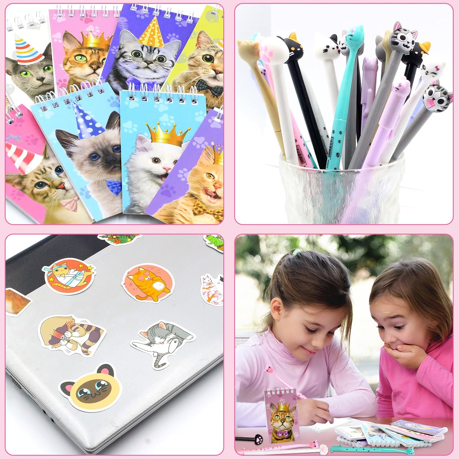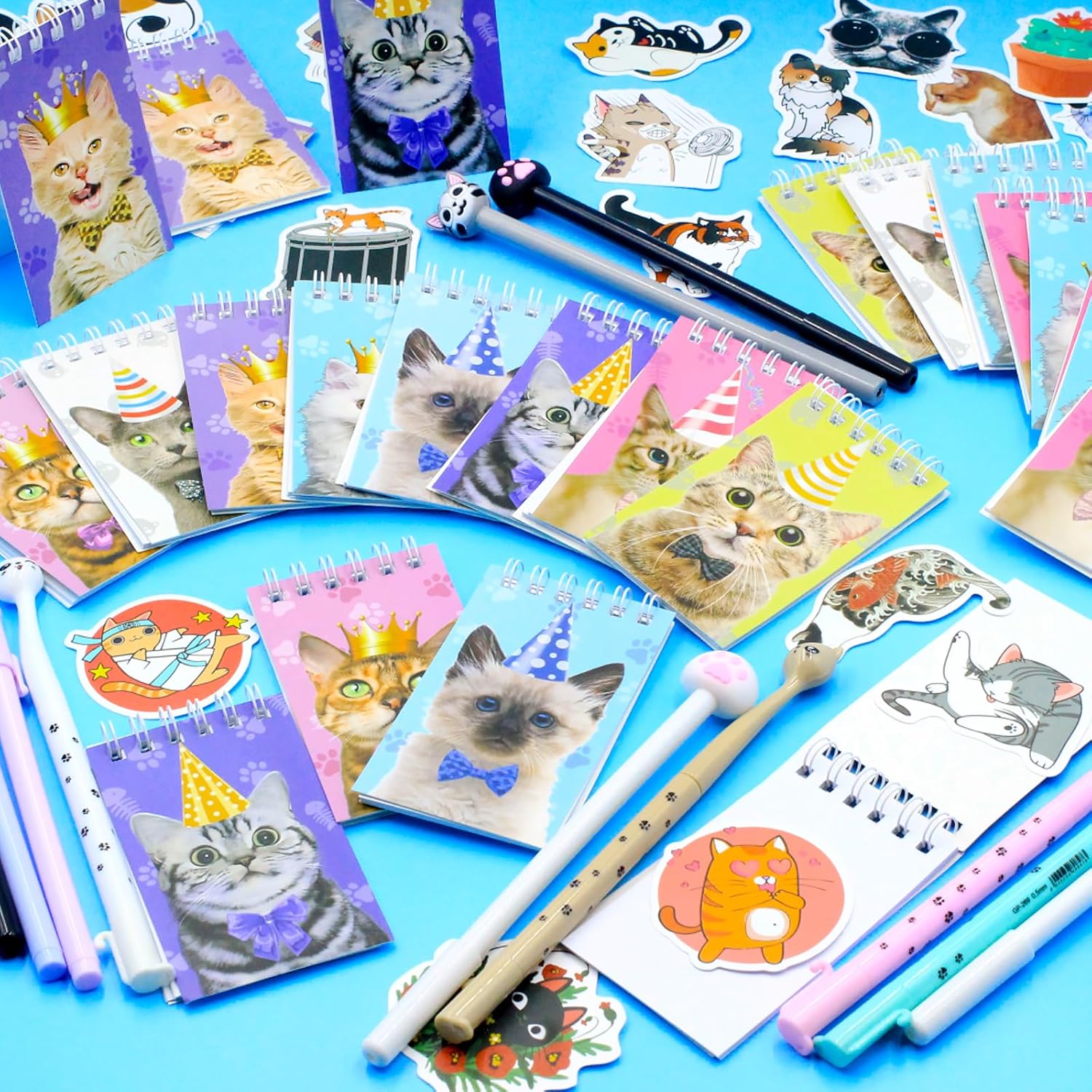 🐱【SET VERSATILE PER CELEBRAZIONE DEL GATTO】Questo set contiene 148 articoli per feste a tema gatto, inclusi 24 mini quaderni a spirale per gatti, 24 penne per gatti e 100 adorabili adesivi per gatti. Con una grande quantità, funge sia da accessorio per feste a tema gatto che da adorabile ricompensa per l'aula scolastica 🐾【MATERIALI SICURI E PIACEVOLI】I nostri 12 recinti per gatti sottolineano la sicurezza e il divertimento e sono realizzati in plastica sicura e di alta qualità con un design innovativo che aumenta il fattore divertimento. I taccuini per gatti sono dotati di una copertina antigraffio e pagine rilegate in modo sicuro, che li rendono i preferiti di bambini e adulti 😽【DESIGN ADORABILE DEL GATTO】Le nostre bomboniere per gatti mostrano una varietà di graziosi modelli di gattini, che li rendono un elemento accattivante alle feste e il perfetto regalo di compleanno a tema gatto che i ragazzi e le ragazze adoreranno 🐾【REGALI ECCEZIONALI PER LA FESTA】Questi regali per la festa del gatto non sono ideali solo per la festa; Fanno anche ottimi regali. Usali come premi in classe, riempitivi per sacchetti regalo, sorprese di pignatta, decorazioni per feste di compleanno, premi per scrigni del tesoro, dolcetti con uova di Pasqua, omaggi per feste di Halloween, riempitivi per calze di Natale o semplicemente come regali a tema gatto per ragazze 🙀【SICUREZZA DOPO LE FESTE】La tua soddisfazione è la nostra massima priorità. Affidati al nostro affidabile servizio post-vendita per aiutarti con tutte le preoccupazioni e i problemi. Goditi la tua festa in tutta sicurezza, sapendo che saremo lì per aiutarti in ogni fase del percorso