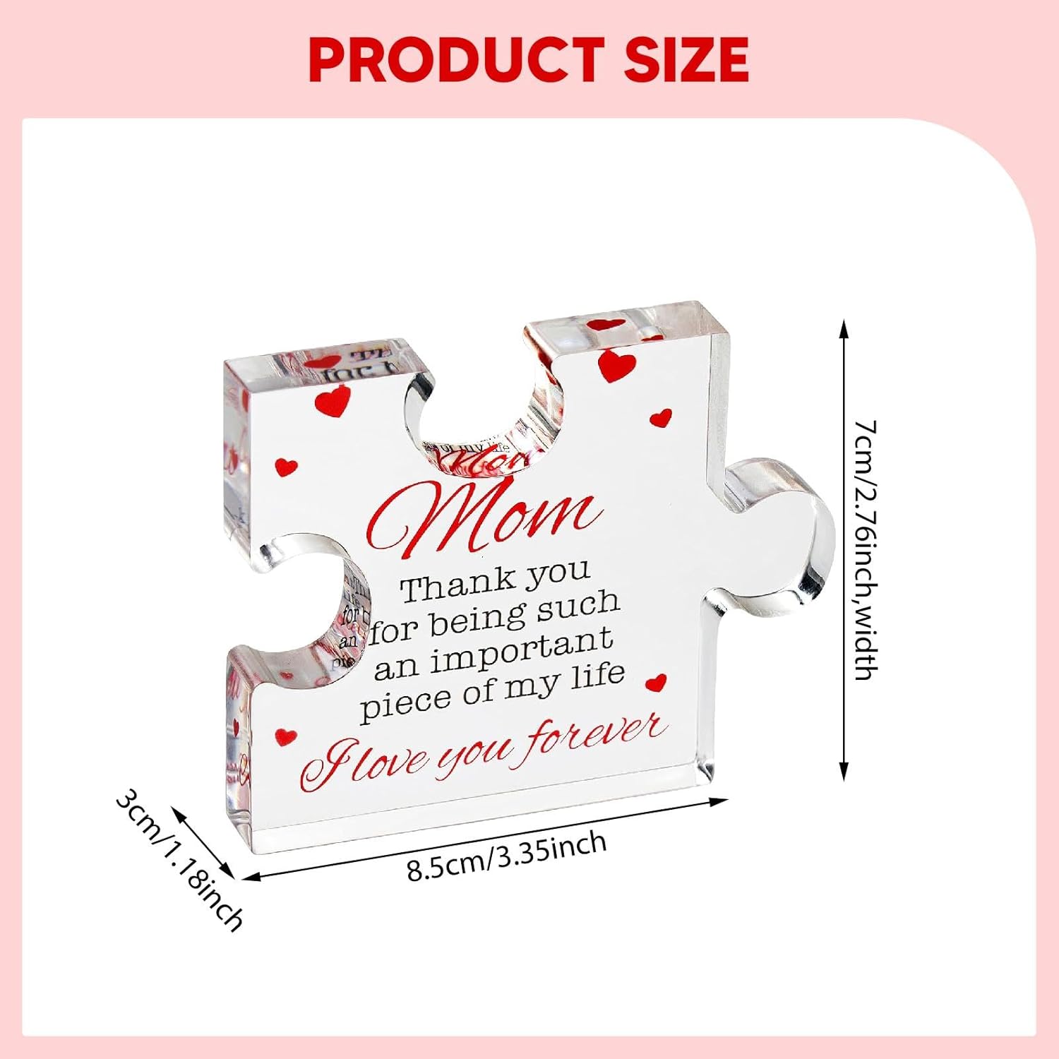 【Regalo】: Blocco puzzle acrilico inciso, regalo sentito per da parte di figlia, figlio o papà 【Design puzzle 】: realizzato in una forma di puzzle creativa, per commemorare occasioni speciali 【Decorazione per la casa affascinante】: il pezzo del puzzle in acrilico inciso è l'arredamento ideale per la casa e l'ufficio per la festa della mamma, il compleanno, il Ringraziamento 【Messaggio sentito】: Contiene le toccanti parole Mamma, grazie per essere una parte così importante della vita. Ti amerò , rendendolo un modo significativo per esprimere gratitudine a tua madre 【Materiale acrilico】: realizzato in acrilico trasparente che offre un aspetto sofisticato, robusto per un uso a lungo termine