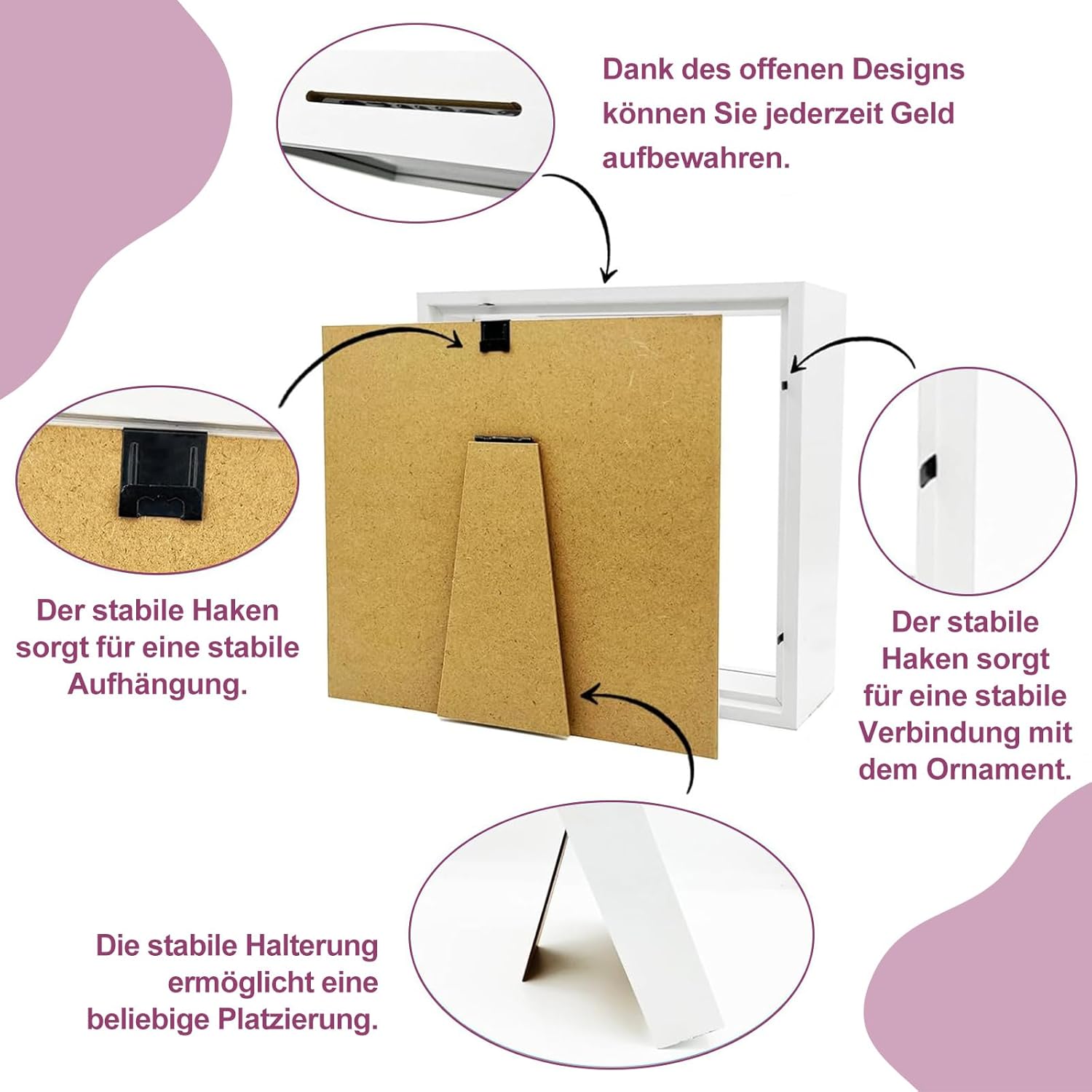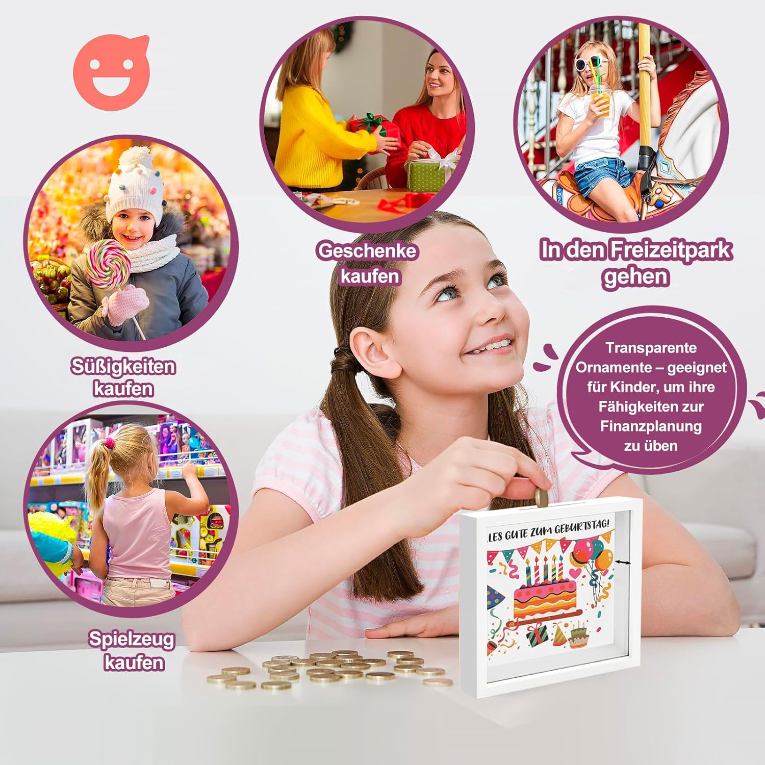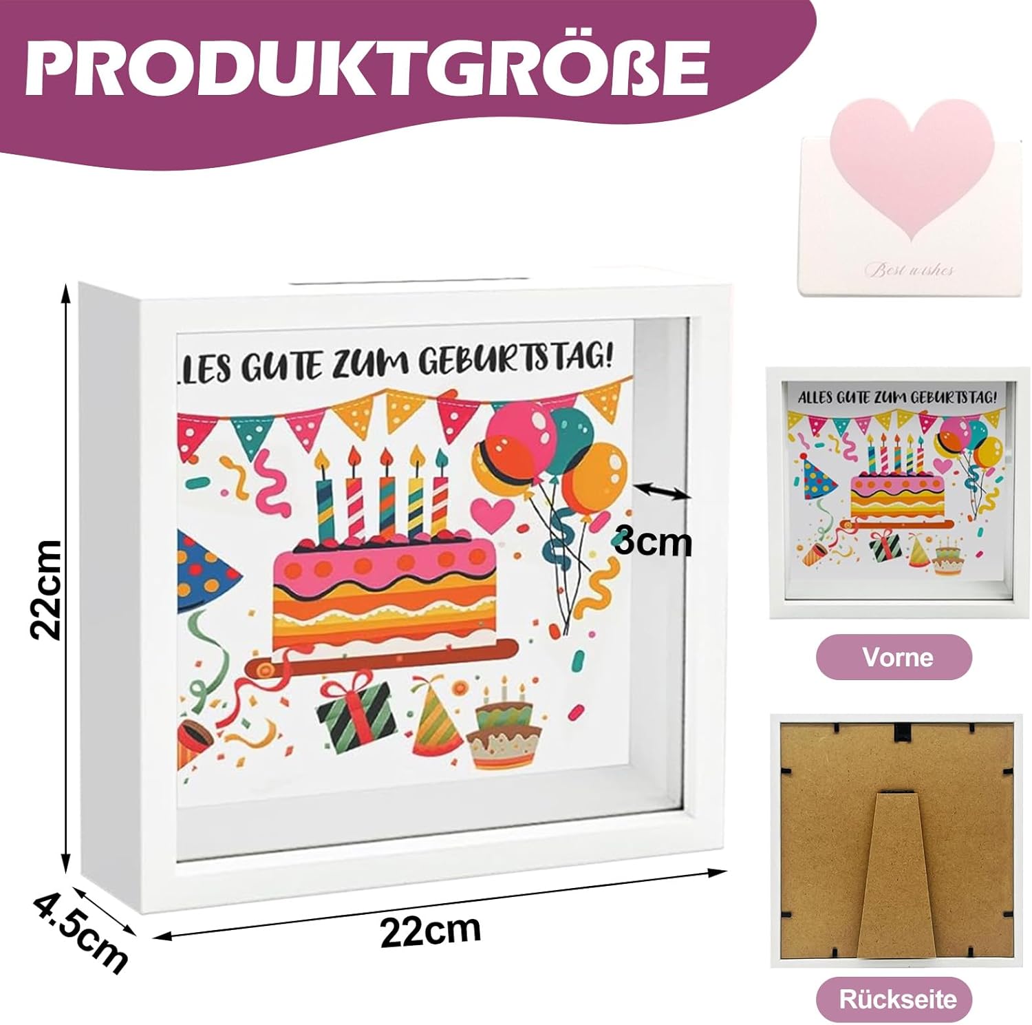 💛Risparmio e regalo unici: questo moderno salvadanaio non solo ti consente di risparmiare in modo efficace, ma anche di presentare un regalo originale in denaro. La cornice 3D con fessura per banconote e monete è pratica ed estetica allo stesso tempo. 💚Opzioni di design individuali: divertente salvadanaio. Con la parete posteriore rimovibile e il telaio profondo potrete personalizzare il salvadanaio secondo i vostri desideri. Progettali con i tuoi elementi decorativi o foto e parole personali. 💙Applicazione versatile: il modello della torta di compleanno può essere utilizzato non solo come salvadanaio, ma anche come cornice per foto. È un divertente salvadanaio ideale per gli auguri di compleanno, battesimi, rientro a scuola o altre occasioni speciali. 💜Materiali di alta qualità: realizzato in legno massello, questo divertente salvadanaio è durevole, sicuro ed ecologico. Divertente salvadanaio Con dimensioni di 22 x 22 cm, offre spazio sufficiente per i tuoi soldi e le tue decorazioni. 🧡Idea regalo perfetta per ogni occasione: il salvadanaio è il regalo ideale per la famiglia, gli amici o i colleghi. Divertente salvadanaio con motivi stimolanti e un design rustico che ti delizierà in ogni occasione.