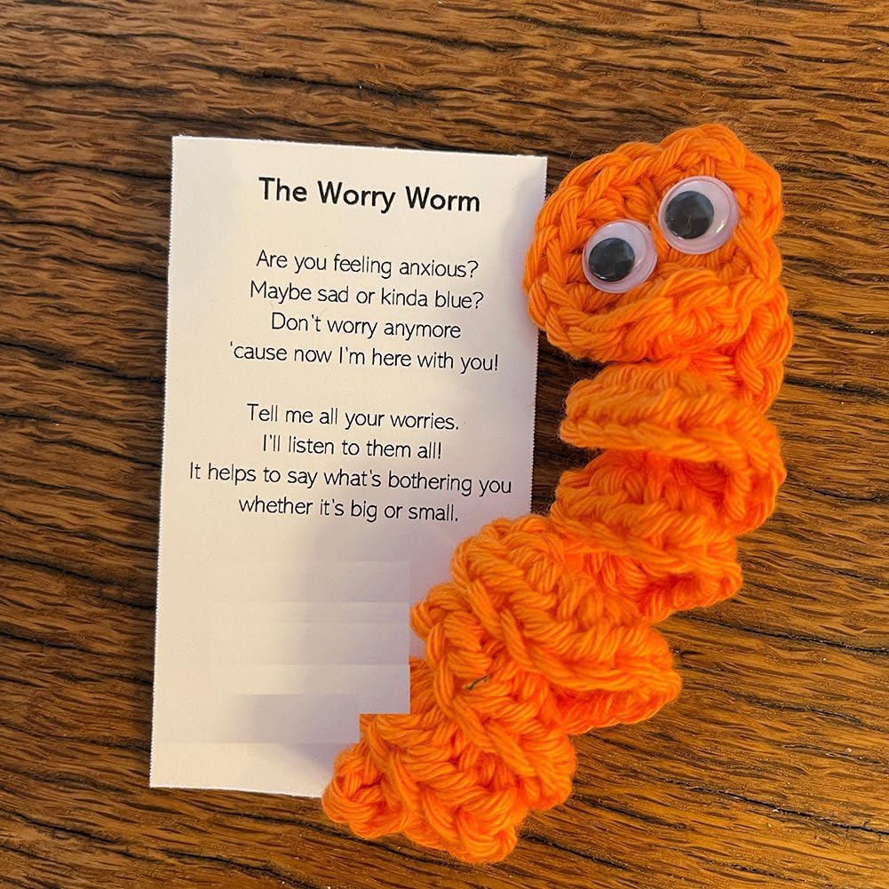 Ognuno è realizzato a mano all'uncinetto con filato al 100%, perfetto come atto casuale di gentilezza all'uncinetto. Questi vermi preoccupanti sono perfetti come giocattoli irrequieti o compagni amichevoli. Il verme di supporto emotivo è un regalo che esprime incoraggiamento e sostegno. Puoi portarlo con te quando sei stressato e triste.