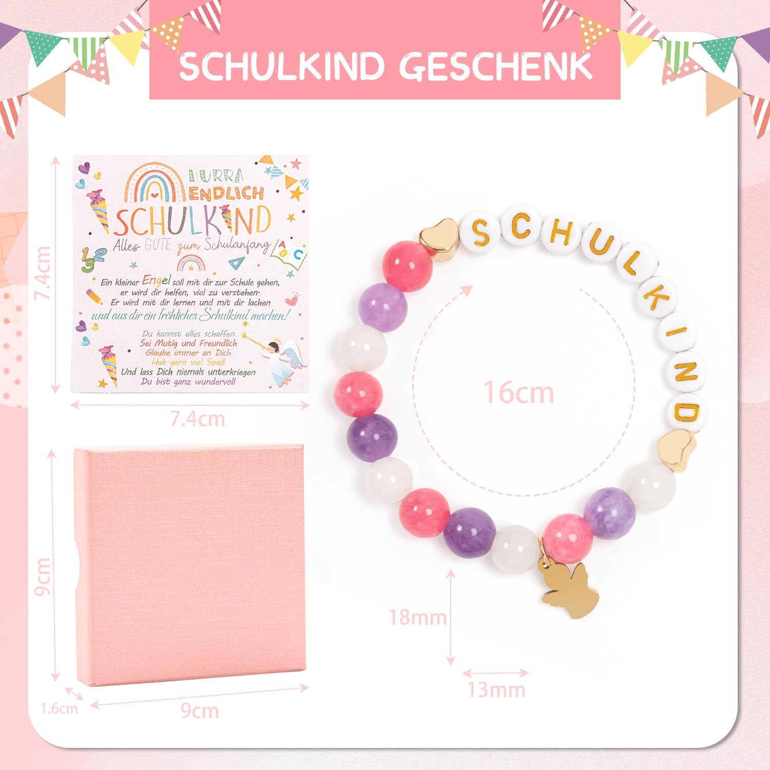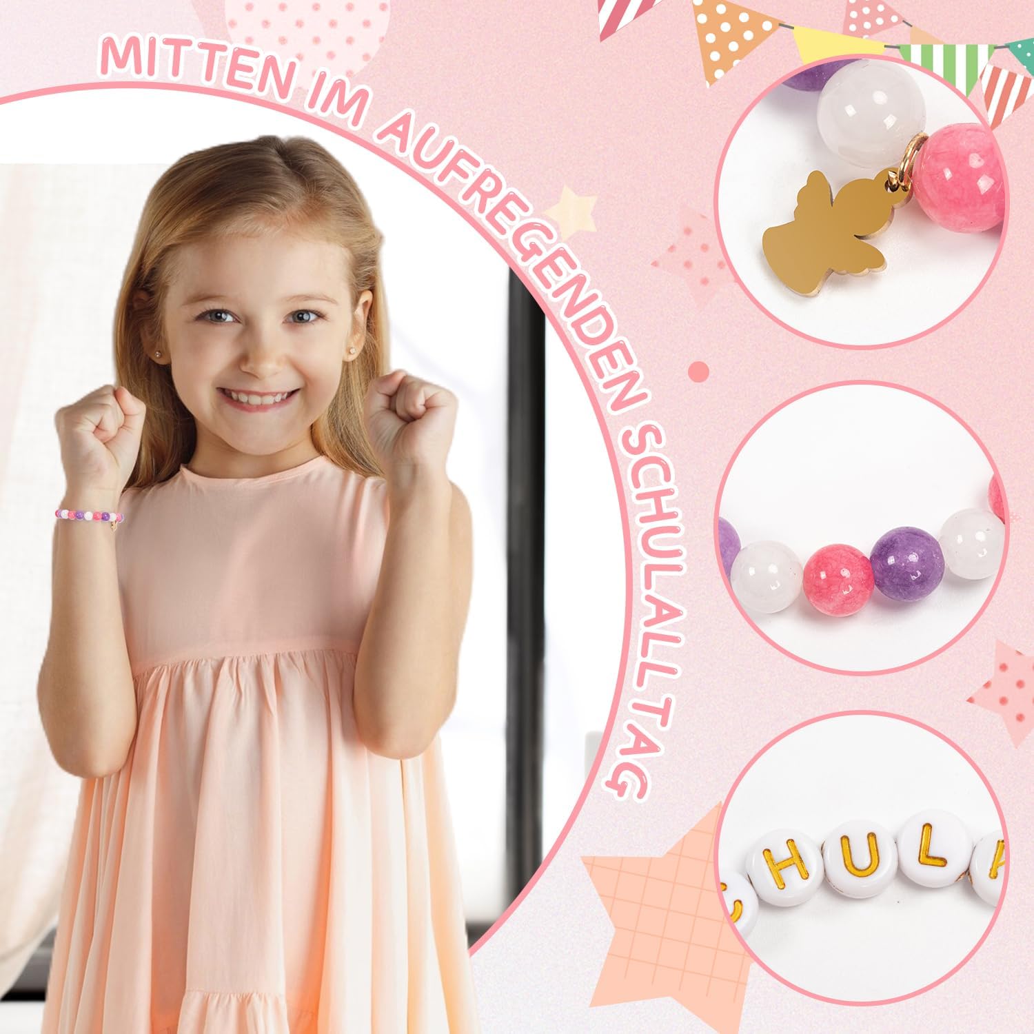 Regali unici per la scuola: braccialetto per bambini con ciondolo a forma di angelo custode per ragazze che vengono a scuola. Il ciondolo simboleggia la benedizione e la protezione. SCUOLA 2025 RAGAZZA: il bracciale con angelo custode è ben progettato e inciso con la parola "scolaretto". Perfetto come regalo per l'inizio della scuola o come sorpresa nel cono della scuola. Misura regolabile: la lunghezza del braccialetto elastico per bambini della scuola è di 16,5 cm e si adatta alla maggior parte delle ragazze. Bella confezione: viene fornito con un biglietto ben confezionato con auguri e parole di incoraggiamento per l'inizio della scuola. Idea regalo versatile: perfetta per l'inizio della scuola, l'inizio della scuola e molto altro ancora. Regalo ideale per l'inizio della scuola e per le prime elementari.