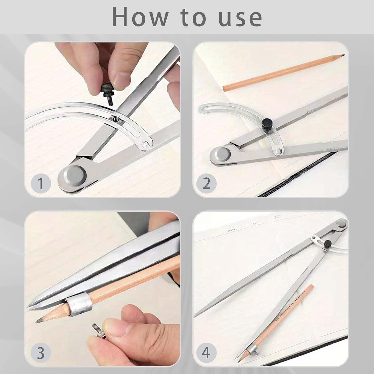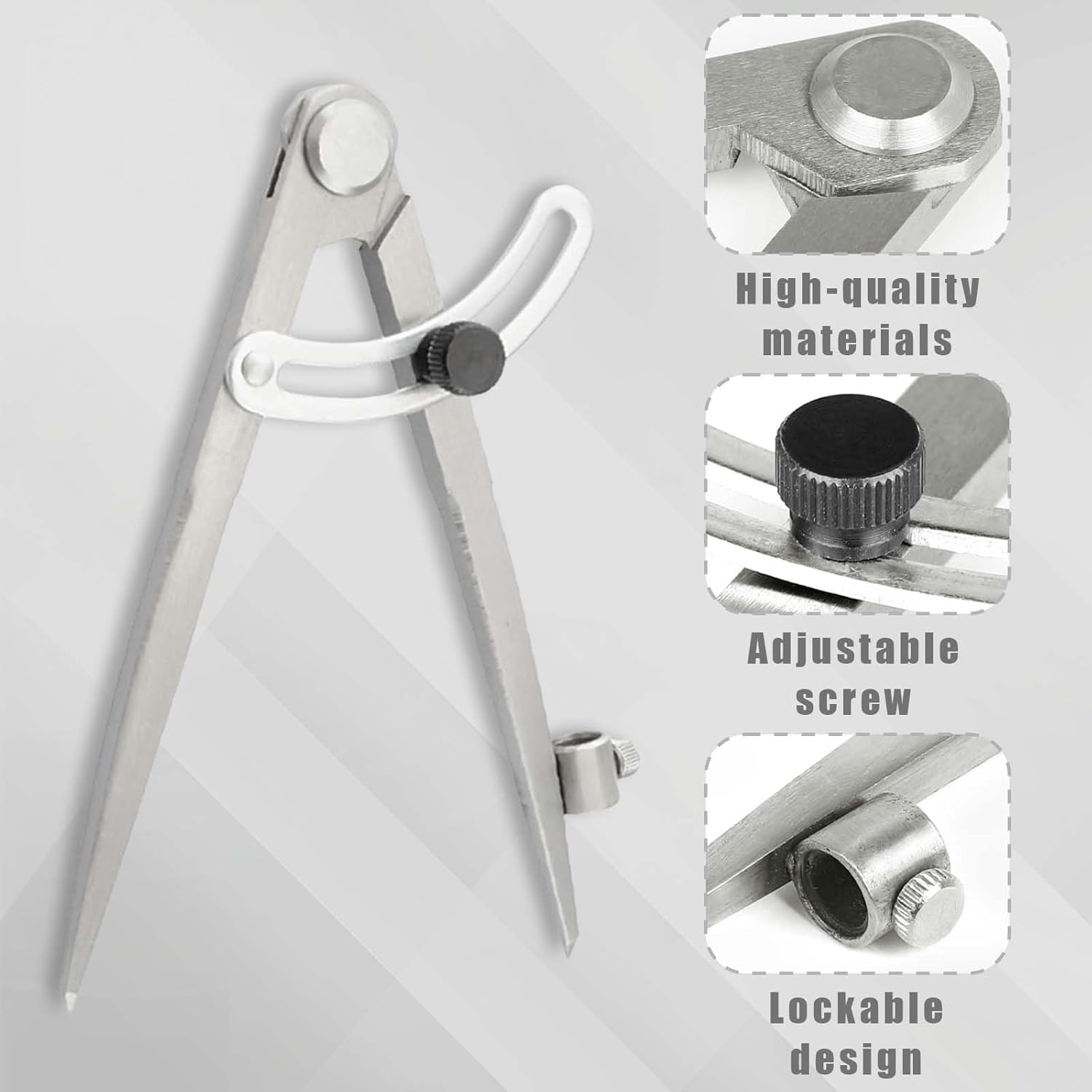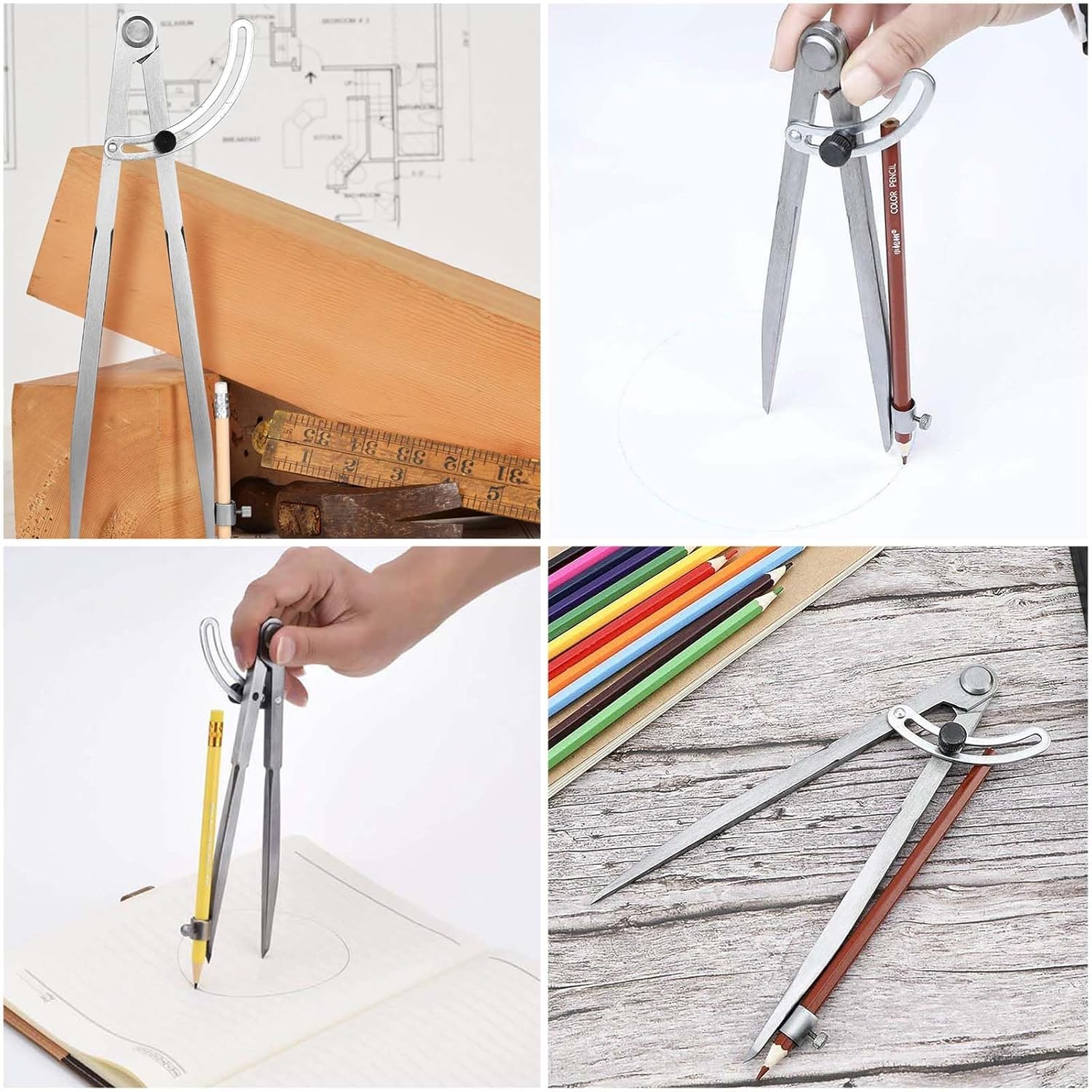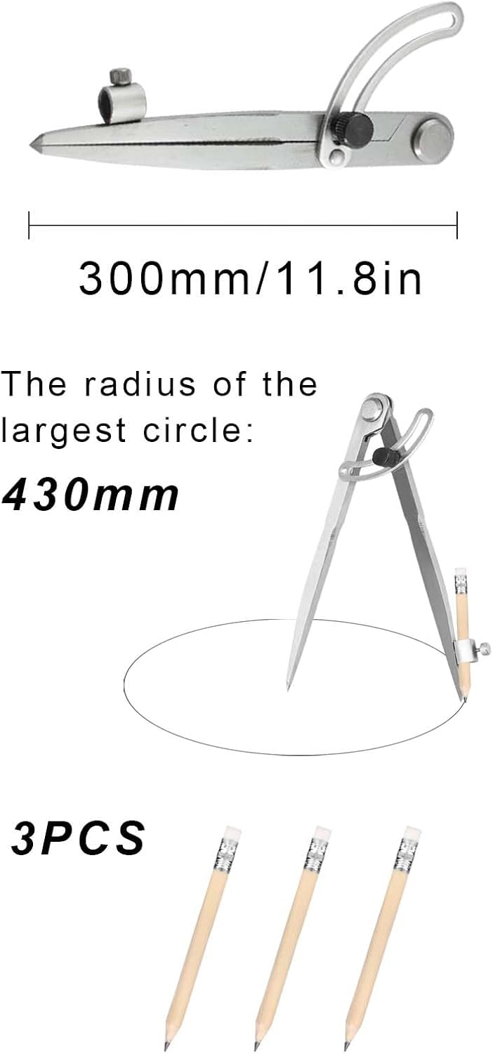 Regolabili compasso ampia gamma di regolazione: Regolabili compasso può essere regolato liberamente e può disegnare un cerchio ampio con un diametro massimo di 300 mm, adatto a una varietà di scenari come compiti di matematica, schizzi di design, decorazioni per quaderni, ecc. Compassi per tracciare design stabile: Compassi per tracciare grazie all'esclusivo design antiscivolo delle ali, sia gli studenti che i professionisti possono disegnare facilmente cerchi precisi senza preoccuparsi che il compasso si allenti a metà del disegno, causando l'inclinazione della linea. Compassi per disegno tecnico materiale: Compassi per disegno tecnico realizzato in acciaio al carbonio, è più resistente dei normali compassi in acciaio inossidabile. Ogni snodo garantisce la resistenza all'uso ripetuto a lungo termine. Non dovrai più preoccuparti che le gambe del compasso si pieghino e si deformino. Grande compasso a punta compatibile con diversi tipi di penna: Grande compasso a punta supporta la sostituzione di penne di diverse specifiche per garantire che il nucleo della penna non cada o si sposti durante il disegno, rendendo ogni disegno fluido e preciso. Compasso Falegname Grande Multiuso: Compasso falegname grande oltre alla carta comune, è adatto anche a vari materiali come cartone e pannelli di legno. Dopo aver sostituito le diverse penne, è possibile disegnare su superfici speciali come lavagne, lavagne bianche e vetro.
