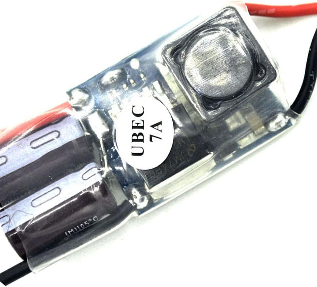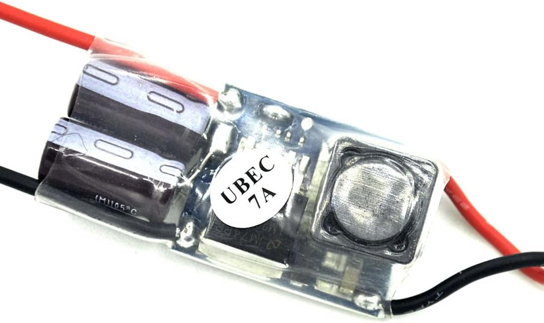 UBEC-5A: Voltaggio 5,5 V-35 V (2-8SLIPO) continuo: 5 A Voltaggio in uscita: 5,25 V +/- 0,5 V istantaneo: 6 A 20 sec Dimensioni: 43 x 21 x 1 mm; Peso del prodotto: 18 g